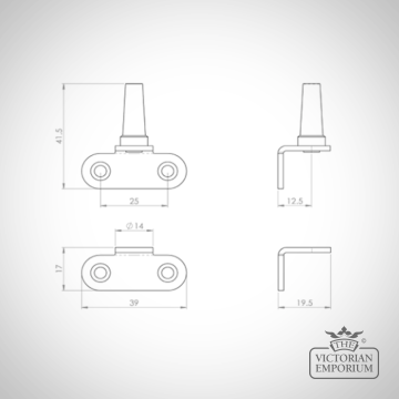 This flush fitting casement stay pin is designed for sash windows where the sash sits flush with the frame, preventing the use of standard stay pins. Its cranked profile allows for secure fixing of a casement stay without compromising the window’s operation or appearance.