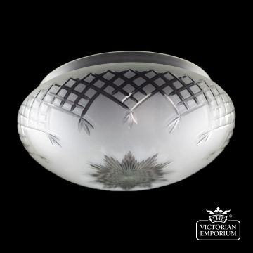 Hand blown and brilliant cut pineapple ceiling bowl etched with brilliant cut pattern in a Medium or Large size