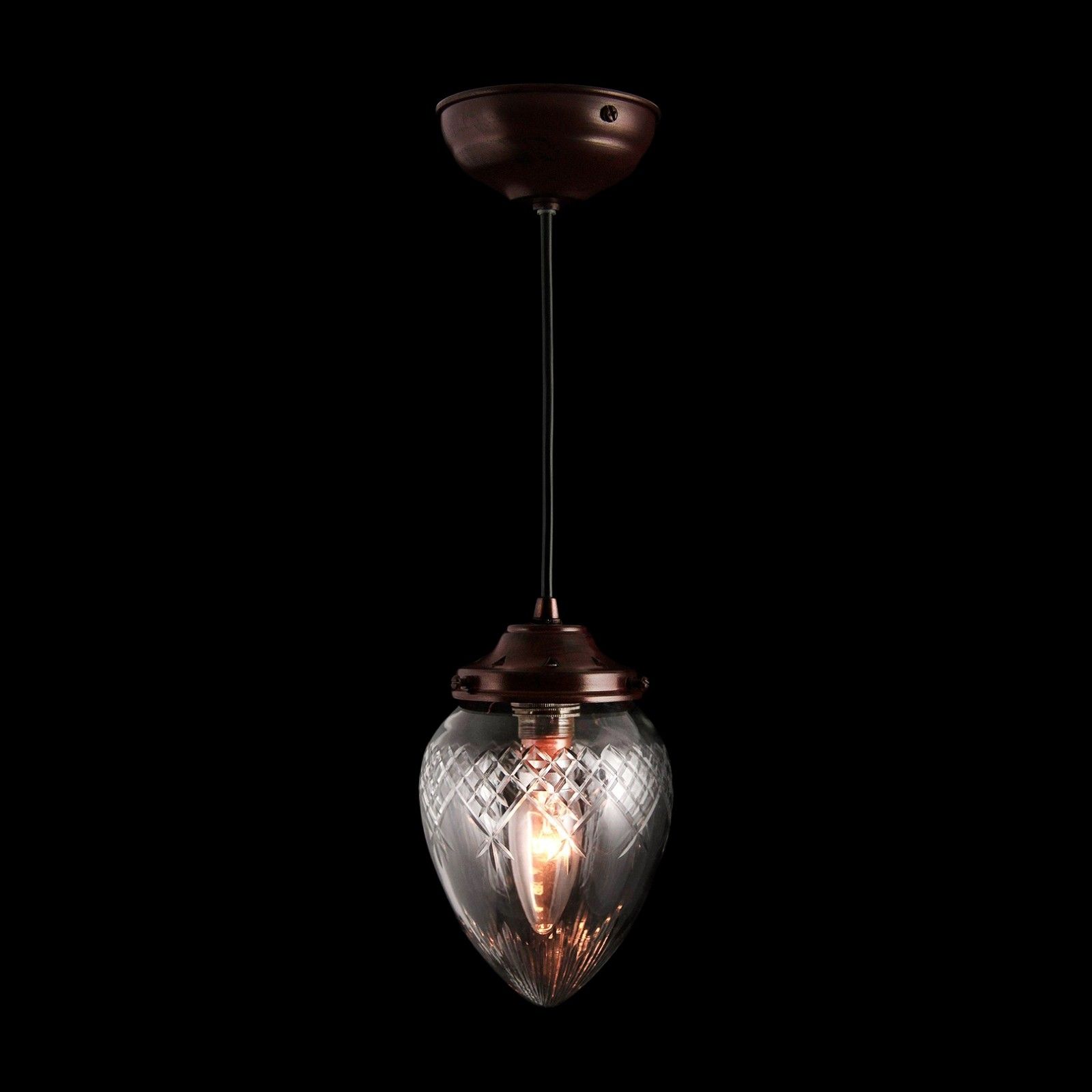 This is a decorative clear cut glass ceiling pendant with antique bronze metalwork and a pineapple design