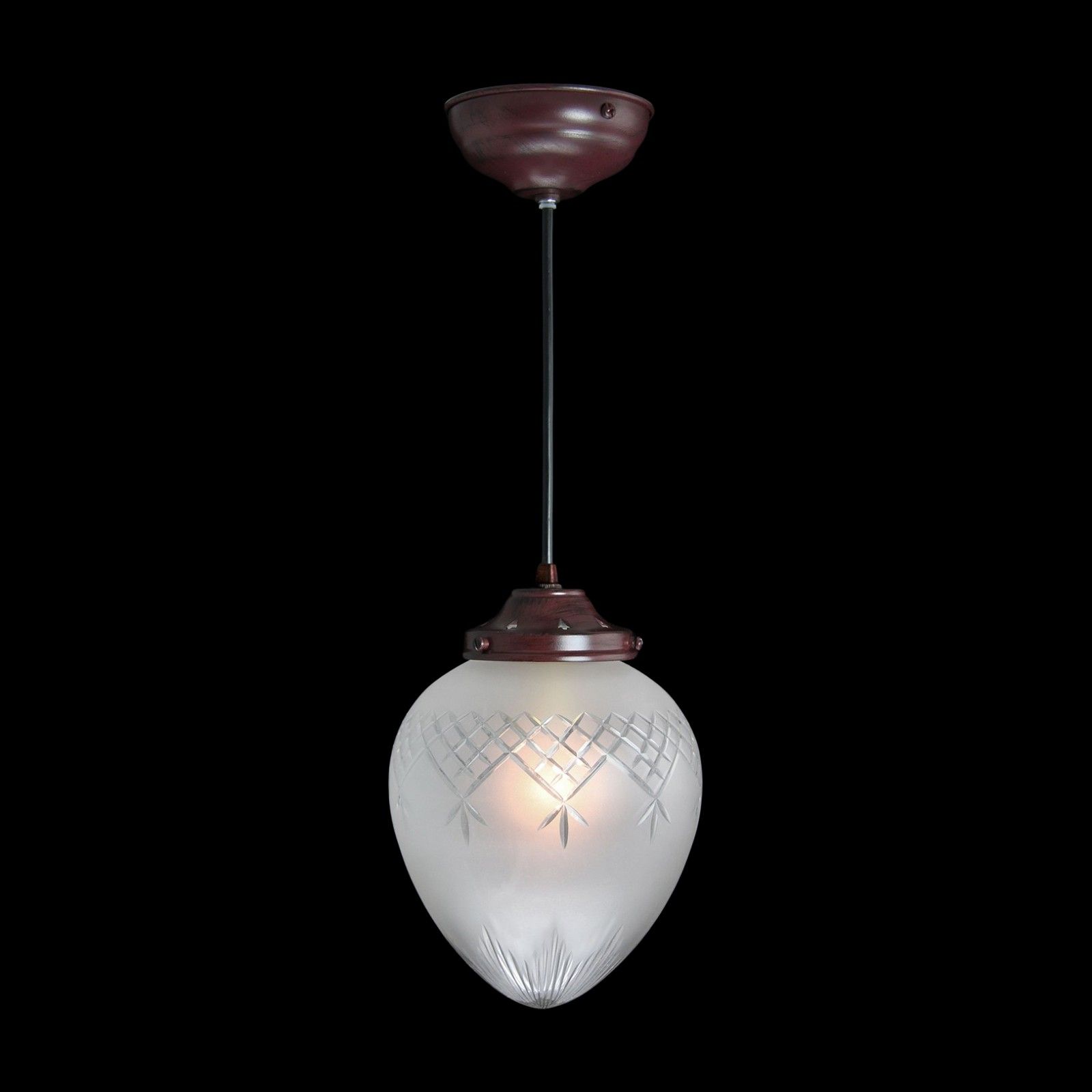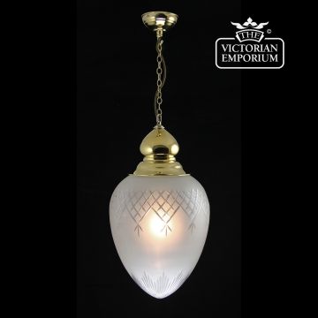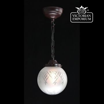 This is a simple cut glass ceiling pendant with antique bronze metalwork and a pineapple design