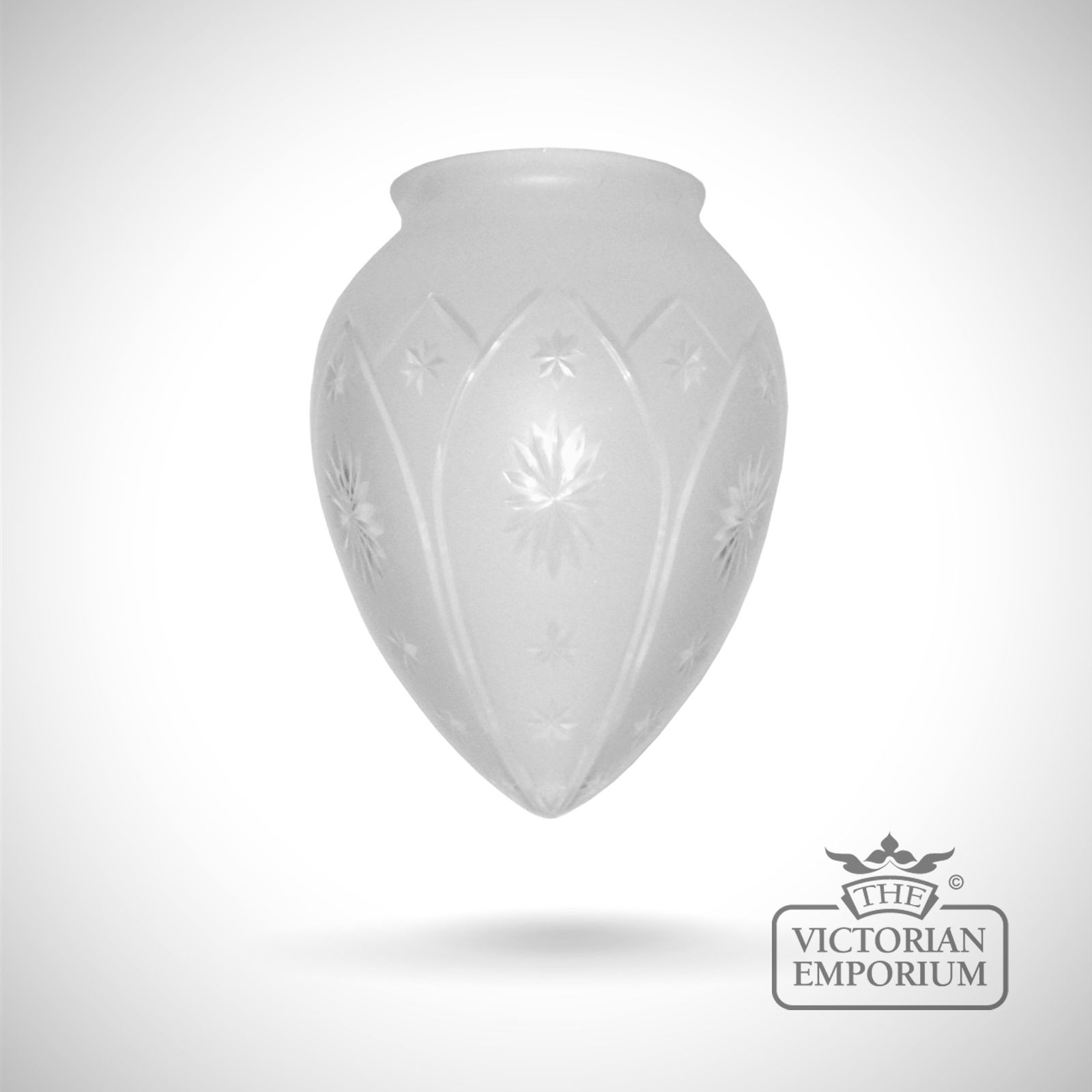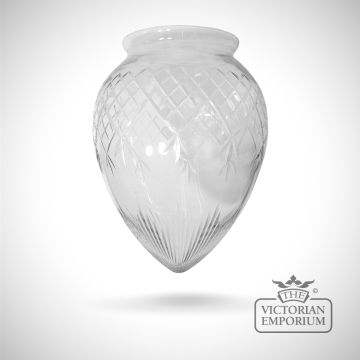 Hand blown and brilliant cut pineapple acorn shades etched with clear brilliant cut pattern in a choice of sizes