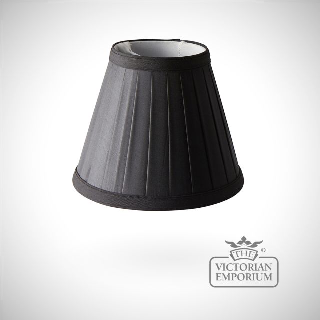 Pleated black lamp shade with easy clip fitting onto candle or golf ball shape lamps