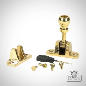 A classic fastener used to secure a sash window. The keep is fitted to the bottom rail of your sash window, and the fastener secures into it when the window is in the closed position.