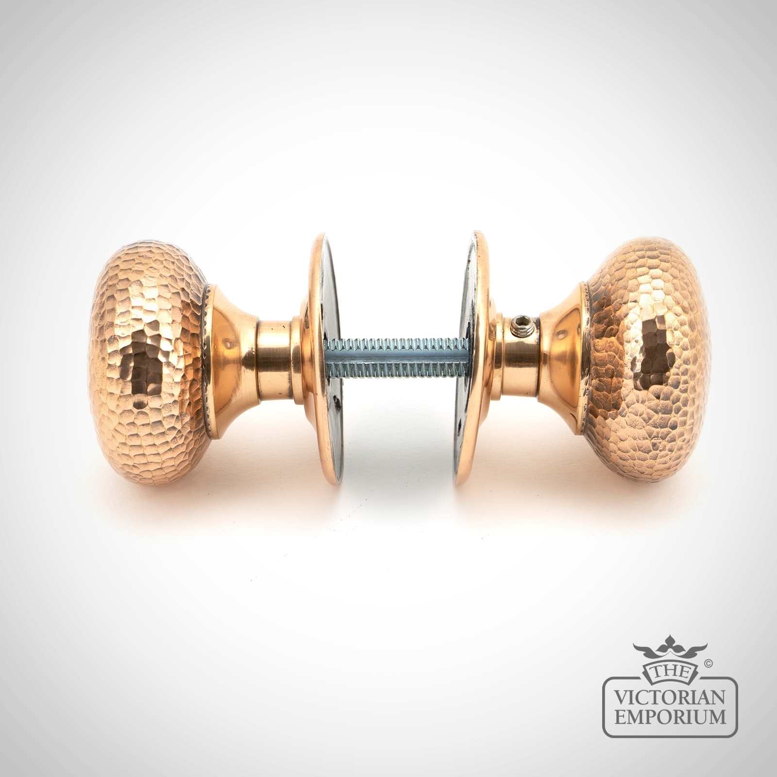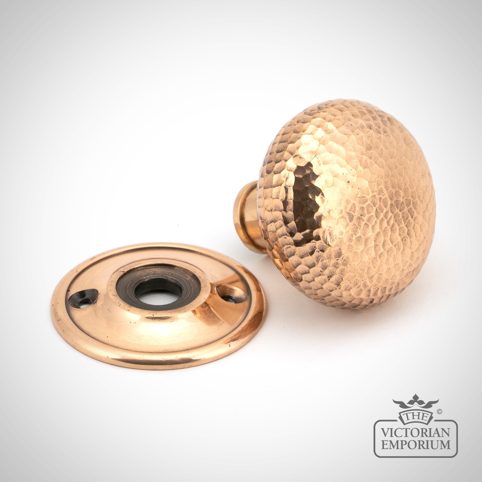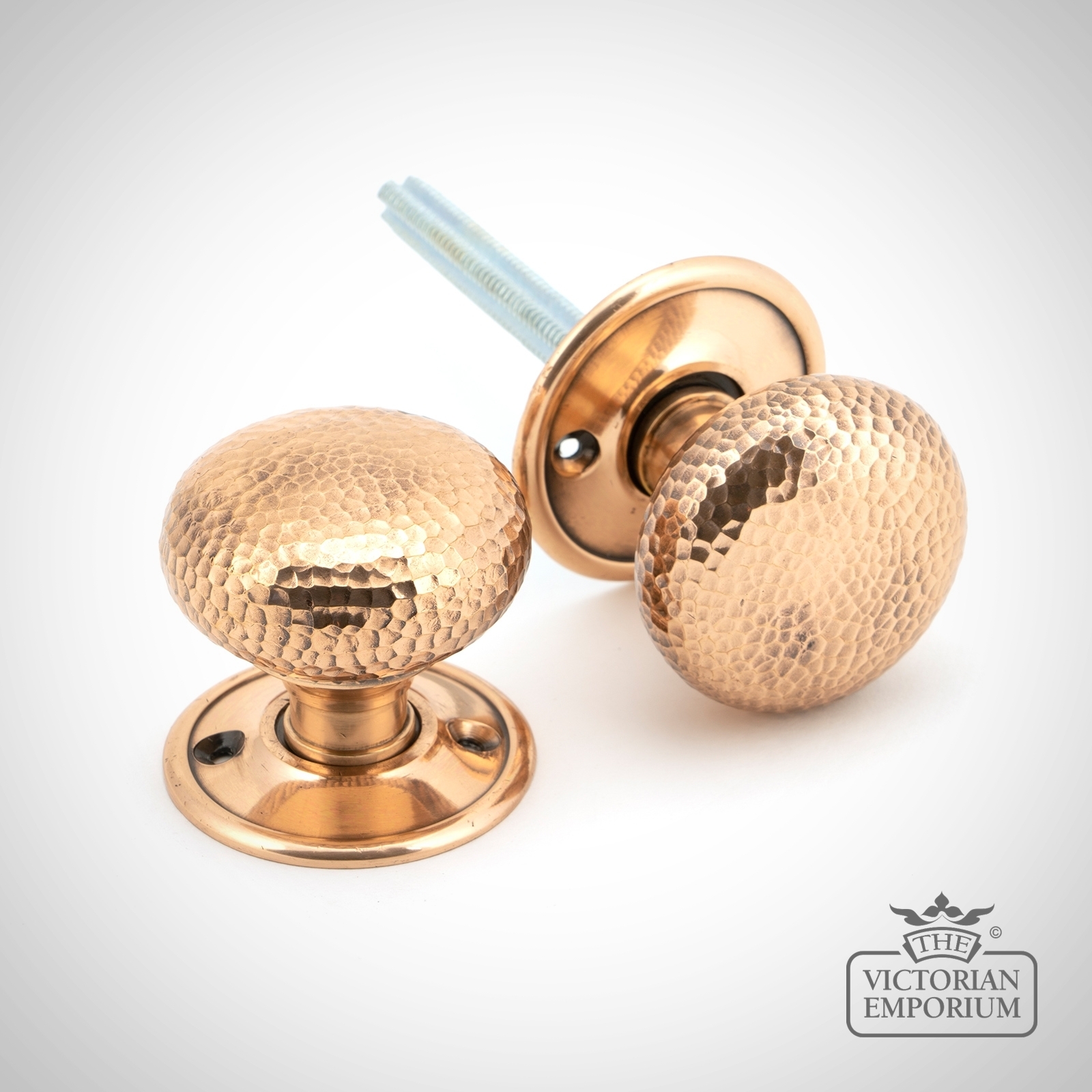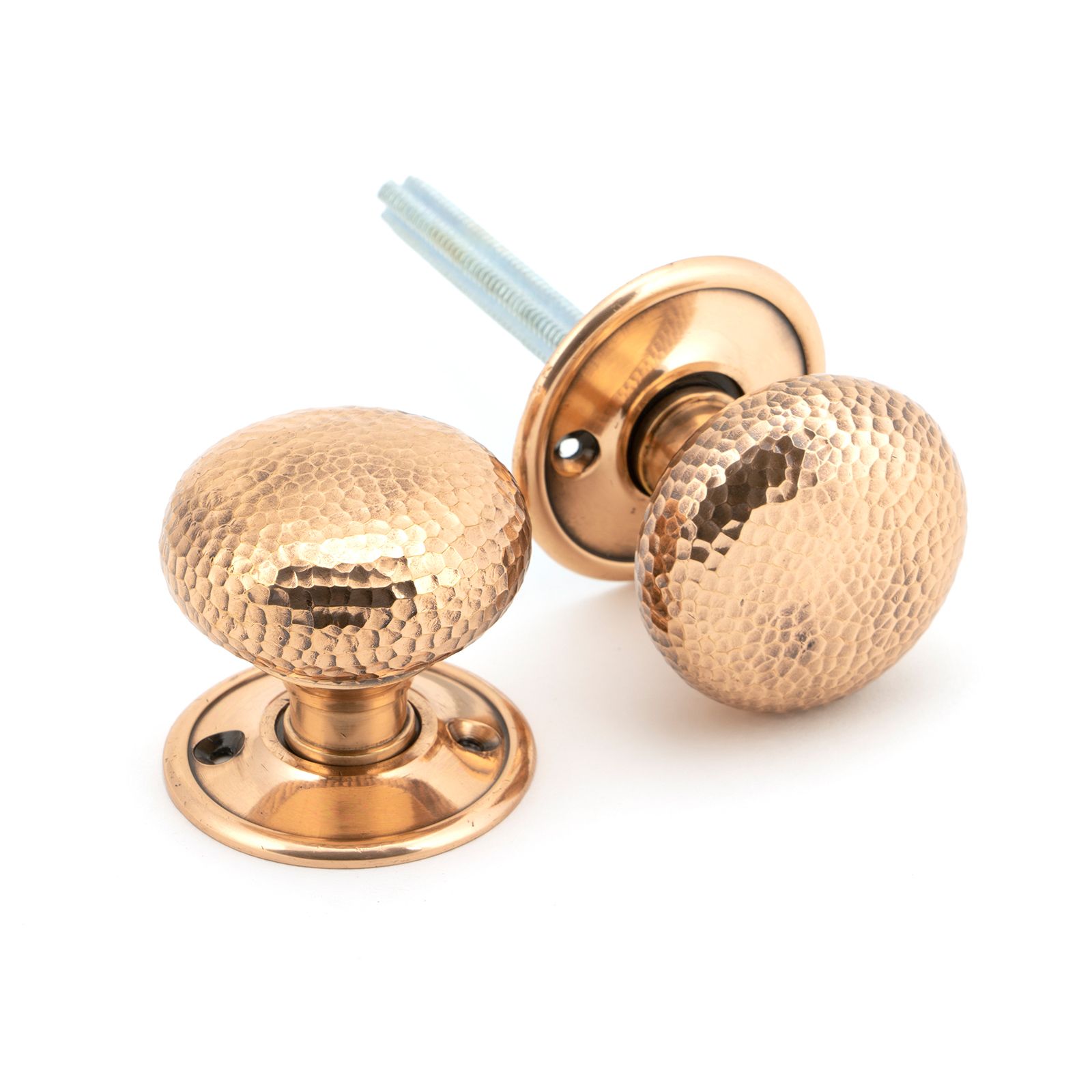 Polished Bronze Hammered Mushroom Mortice/Rim Knob Set