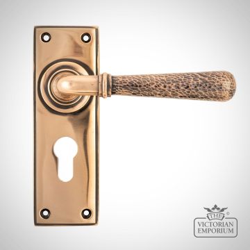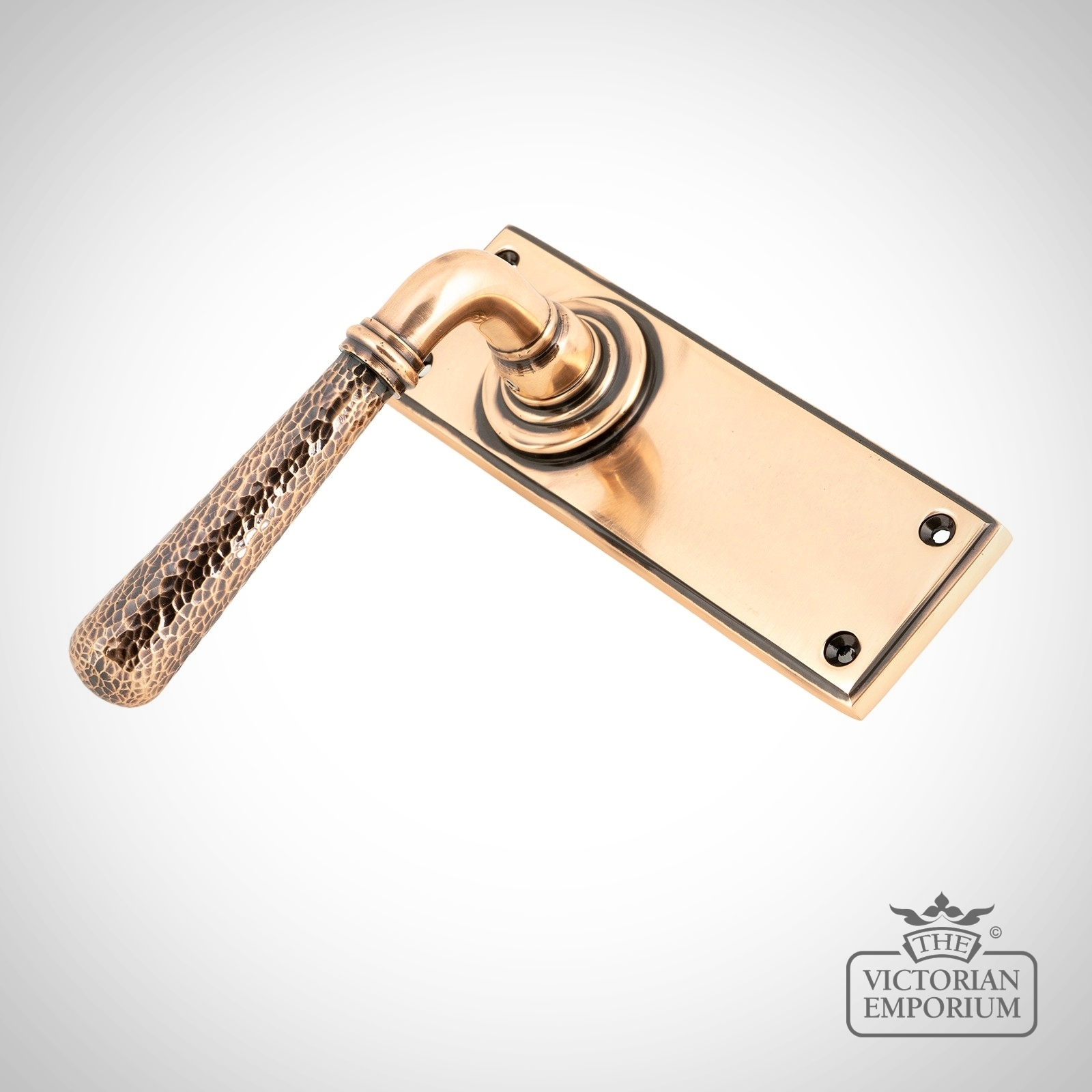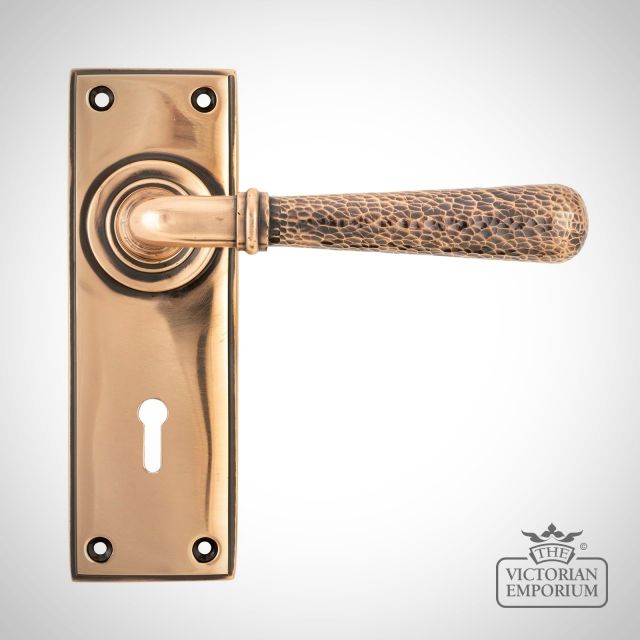Polished Bronze Hammered Newberry Lever Lock or Latch Set