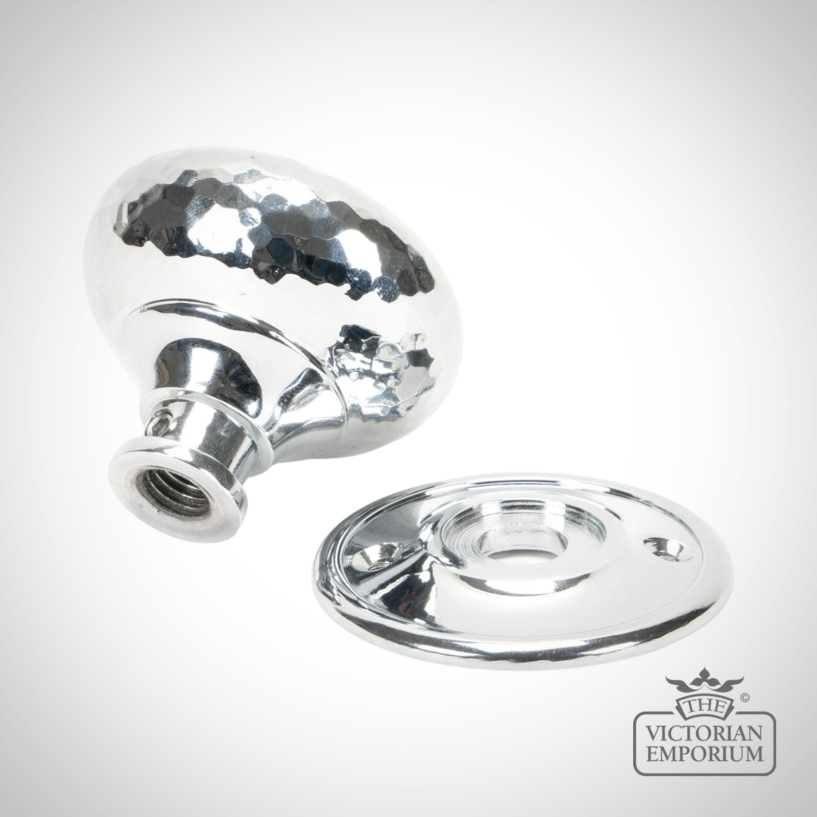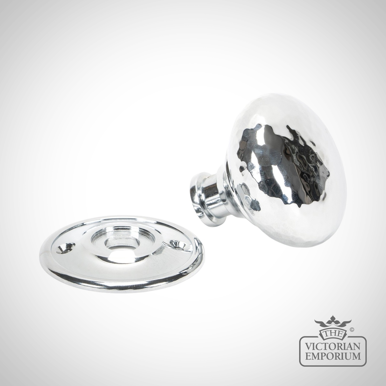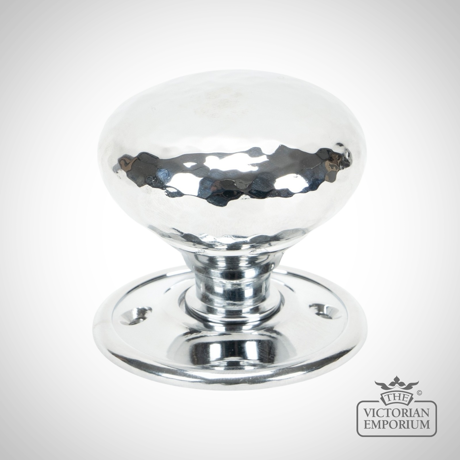 Polished Chrome Hammered Mushroom Mortice/Rim Knob Set