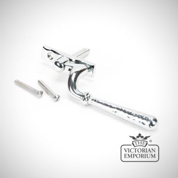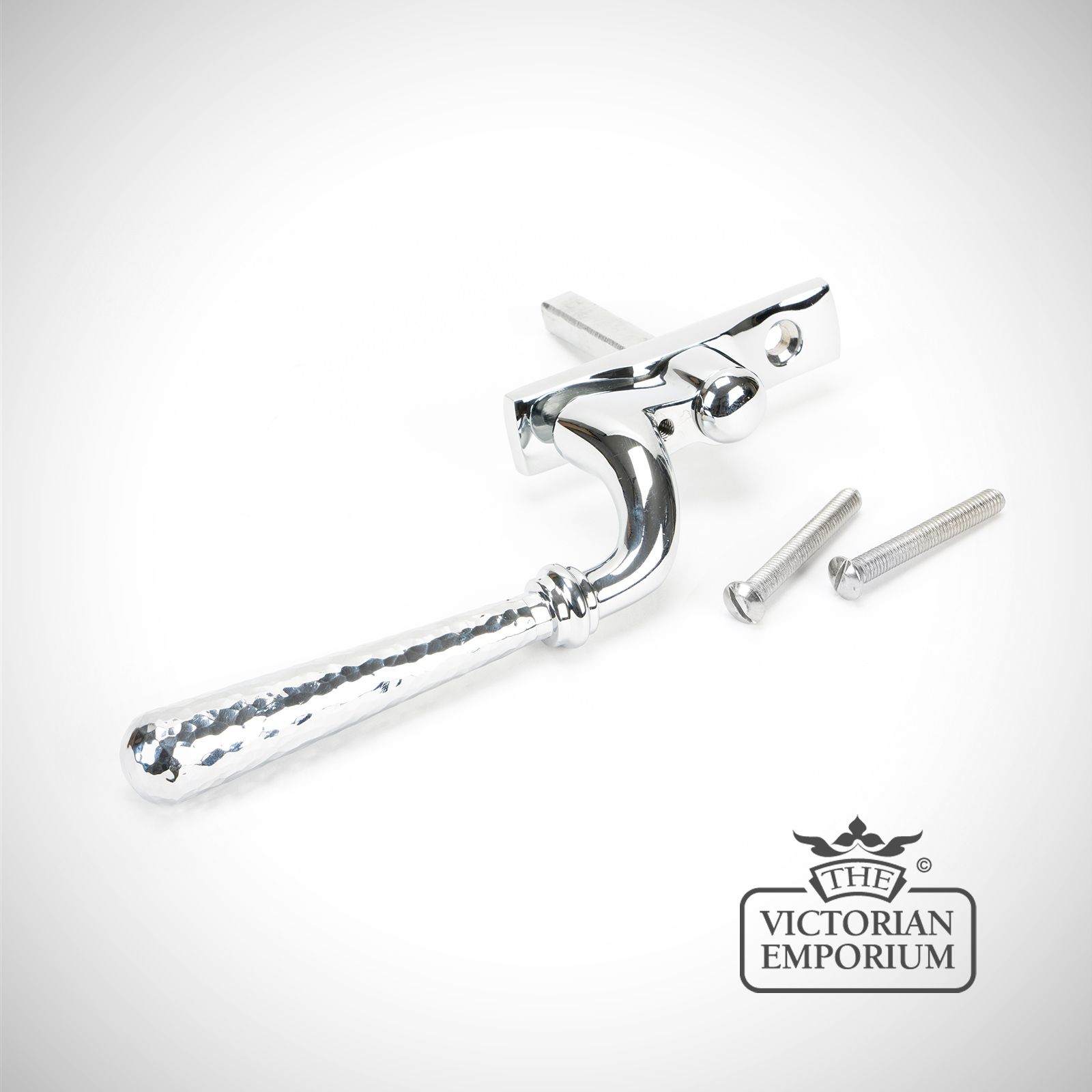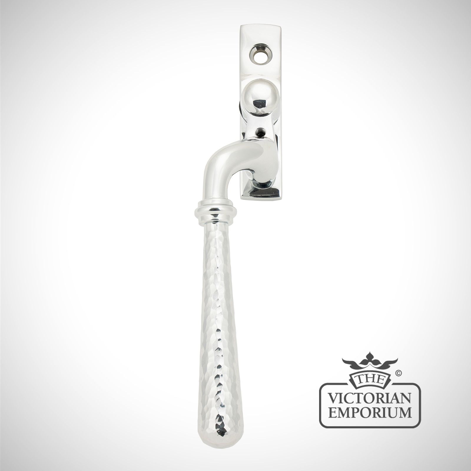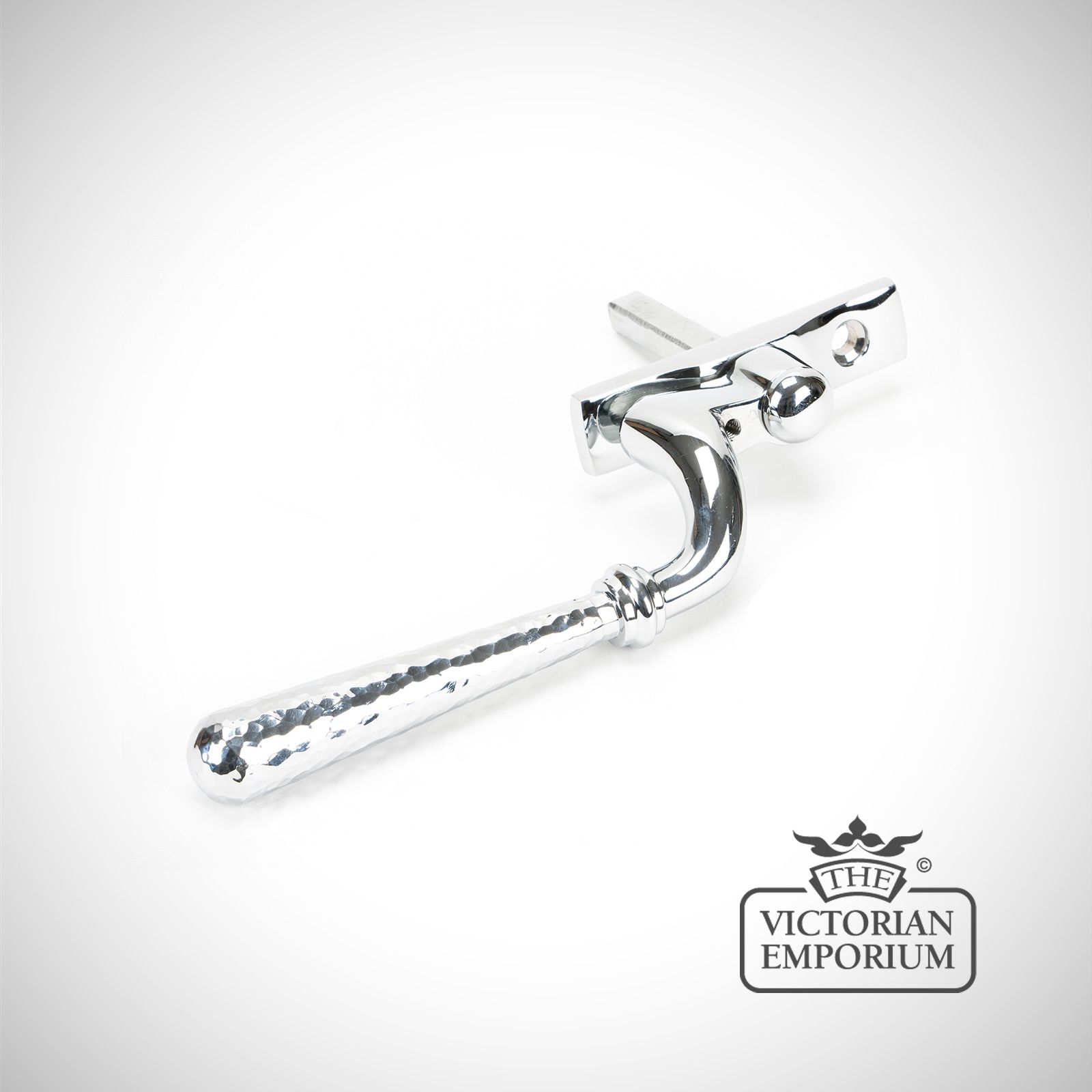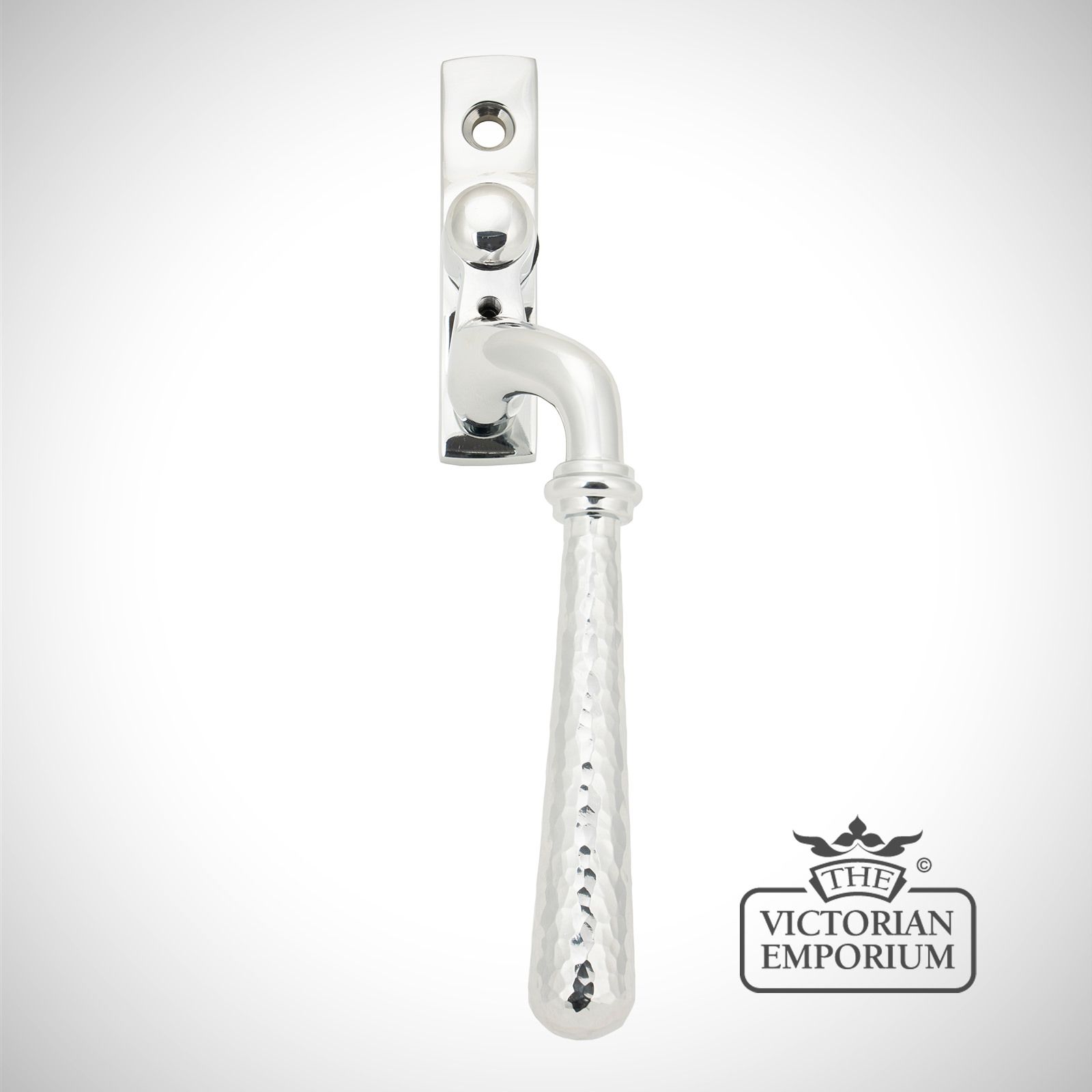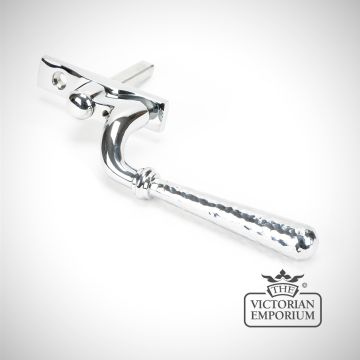 A beautiful polished chrome hammered window espagnolette handle with hammered end detail