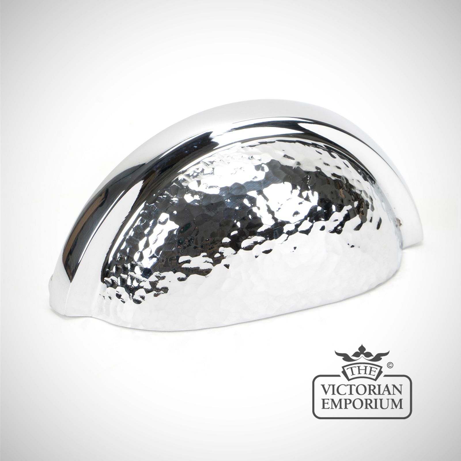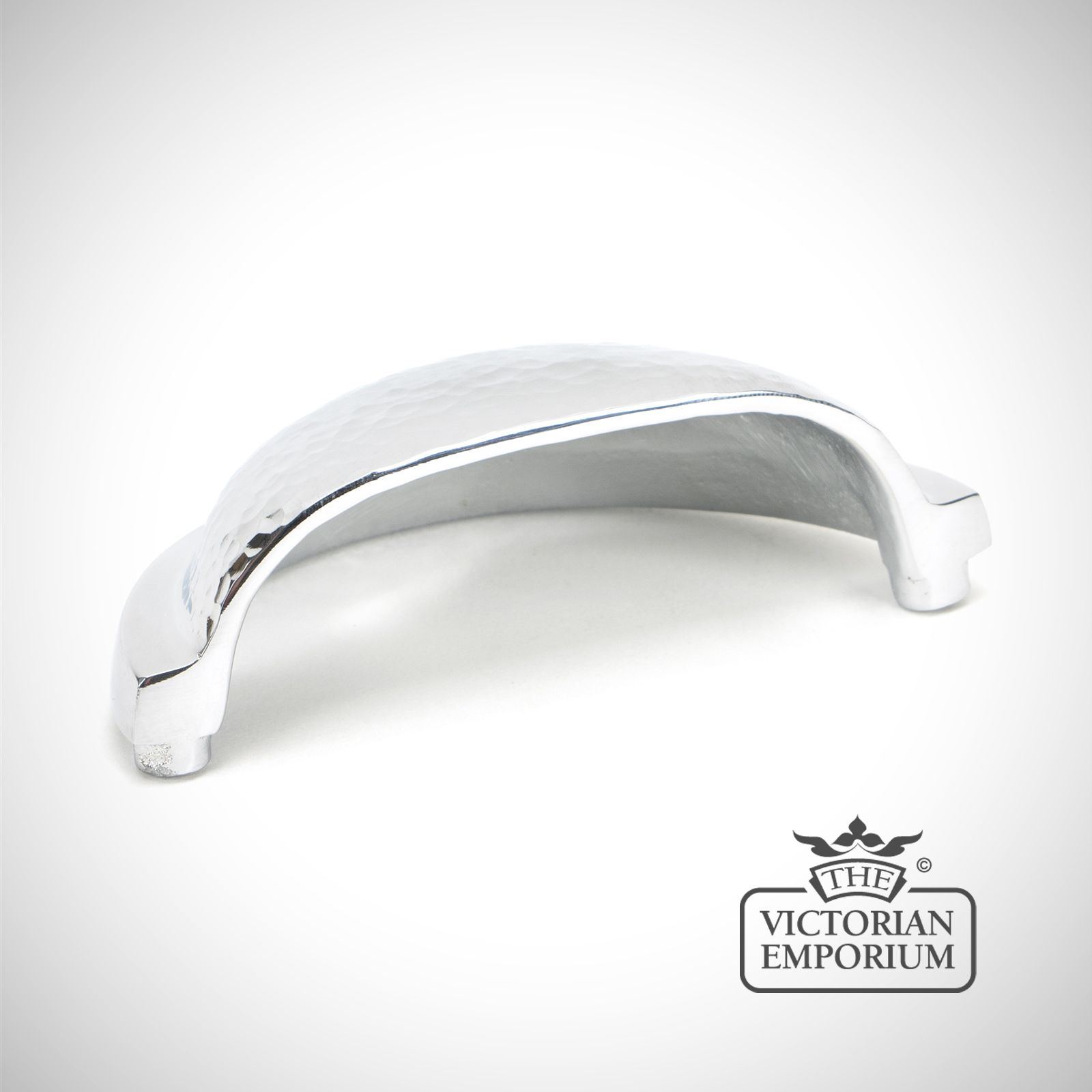 This is a high quality chrome hammered drawer pull which really complements dark coloured wood or painted cupboards or furniture.