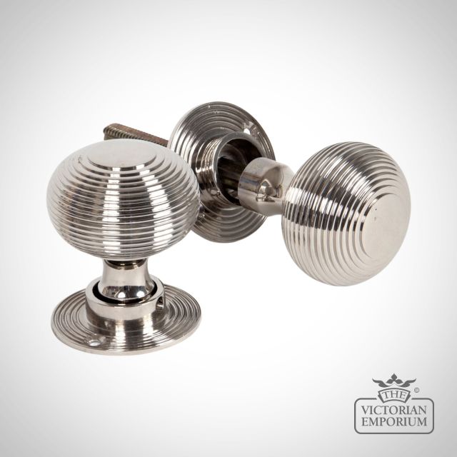 Beehive knob set in bright polished nickel - will give your door that real sparkle