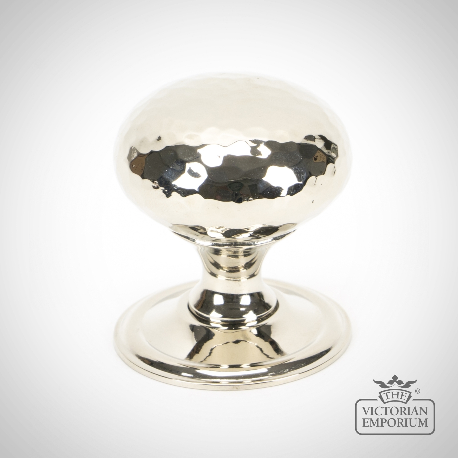 A beautiful hammered cabinet knob with a wonderfully bright polished nickel finish giving it a really stunning shiny finish