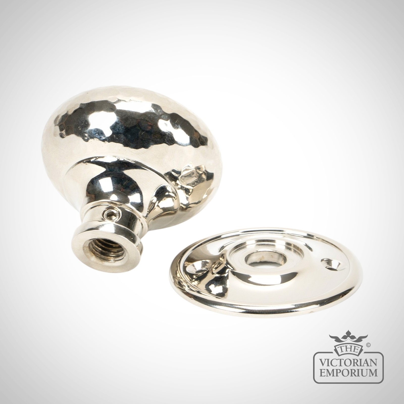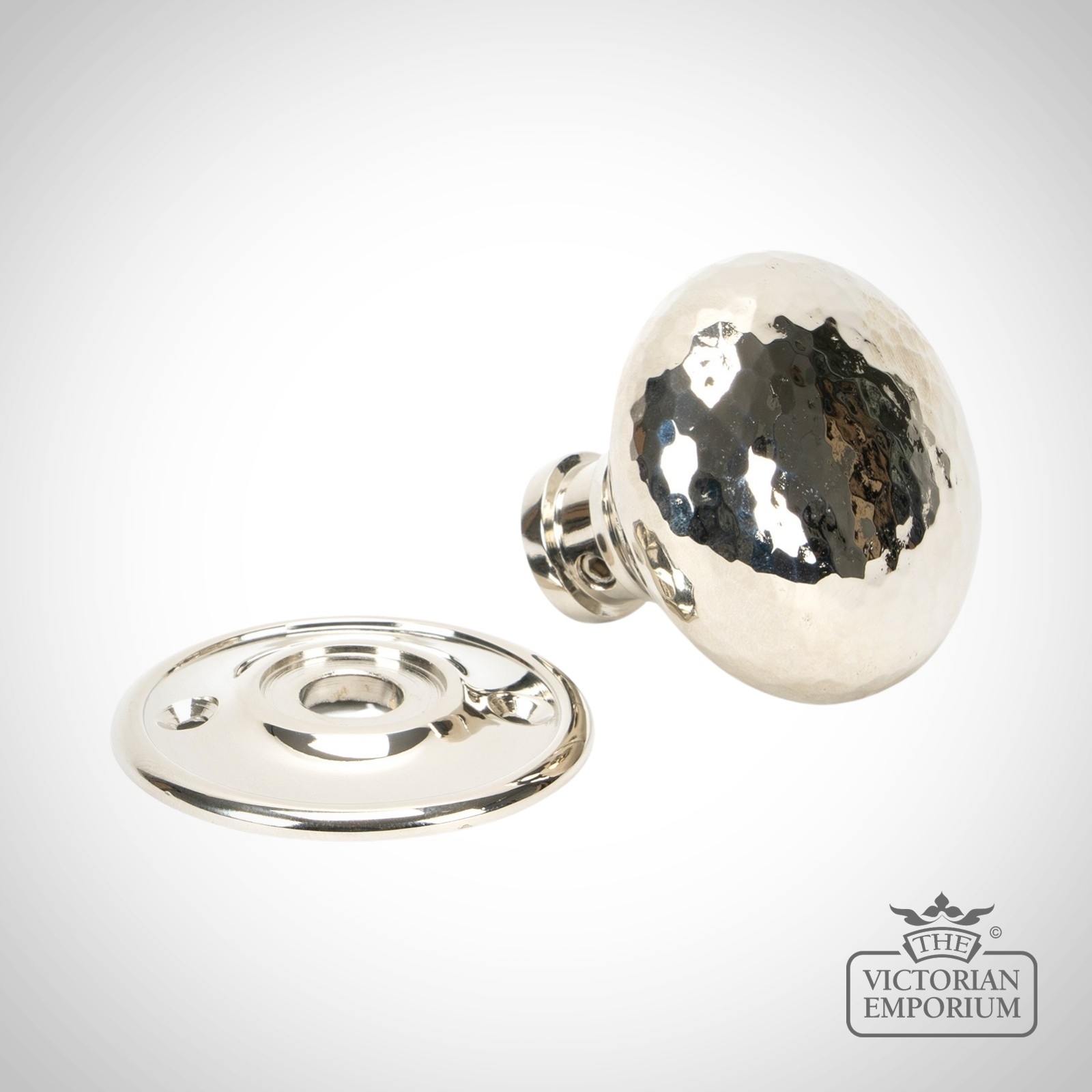 Our hammered polished nickel mushroom knob set is forged from solid brass and is a perfect choice to be used with a multitude of heavy duty locks, latches & thumbturns for various applications within the home.
