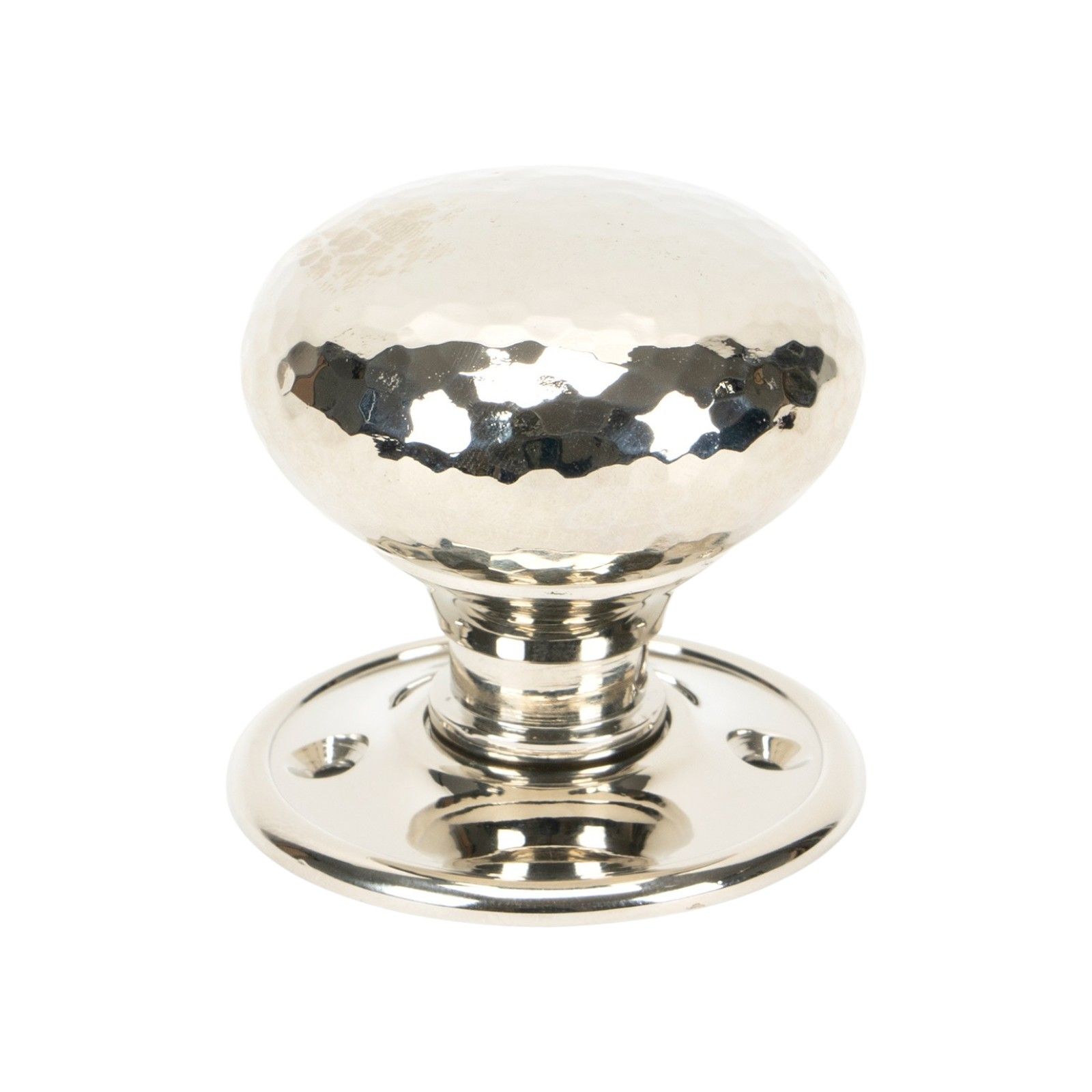 Polished Nickel Hammered Mushroom Mortice/Rim Knob Set