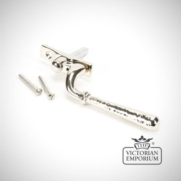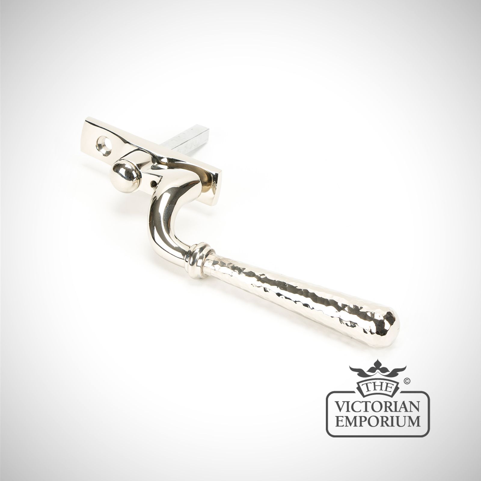 A beautiful polished nickel hammered window espagnolette handle with hammered end detail