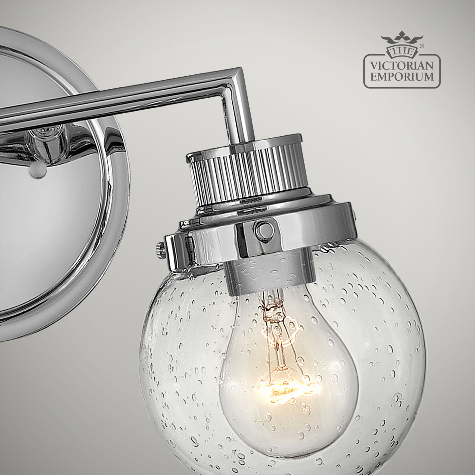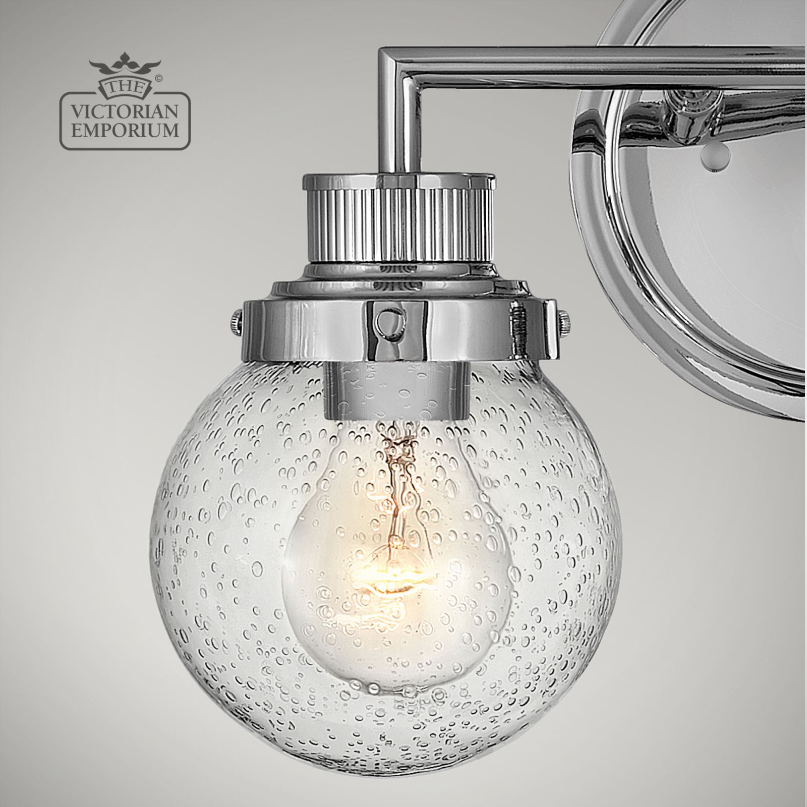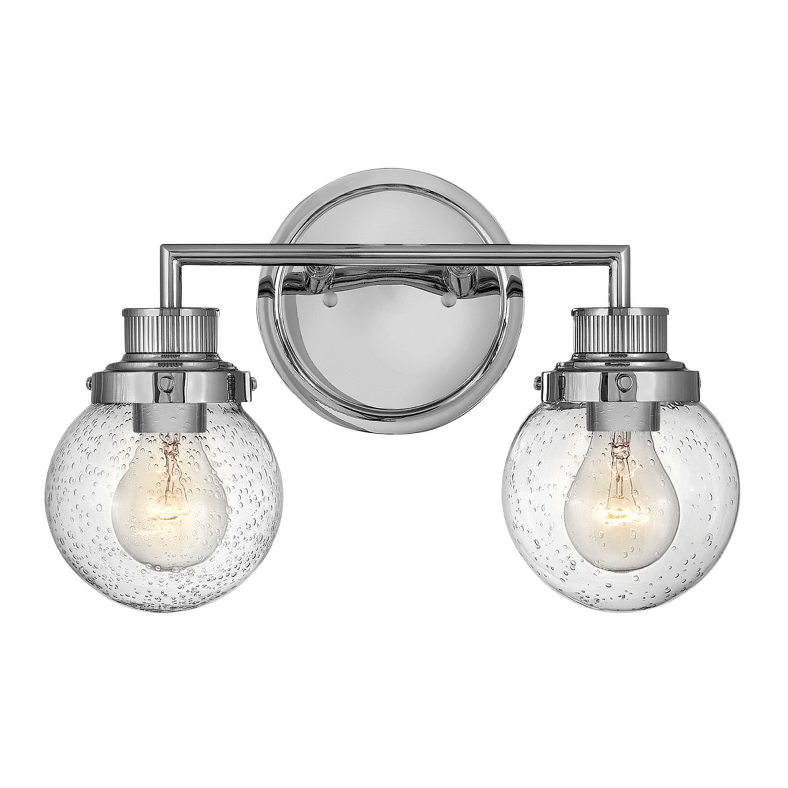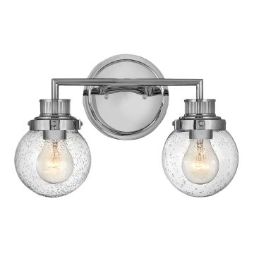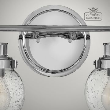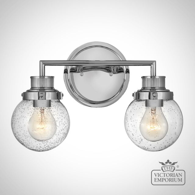 Double Bathroom Wall Light featuring a Polished Chrome finish in a mid-century style with industrial elements. This beautiful bathroom light is made from Steel, Clear Seeded Glass