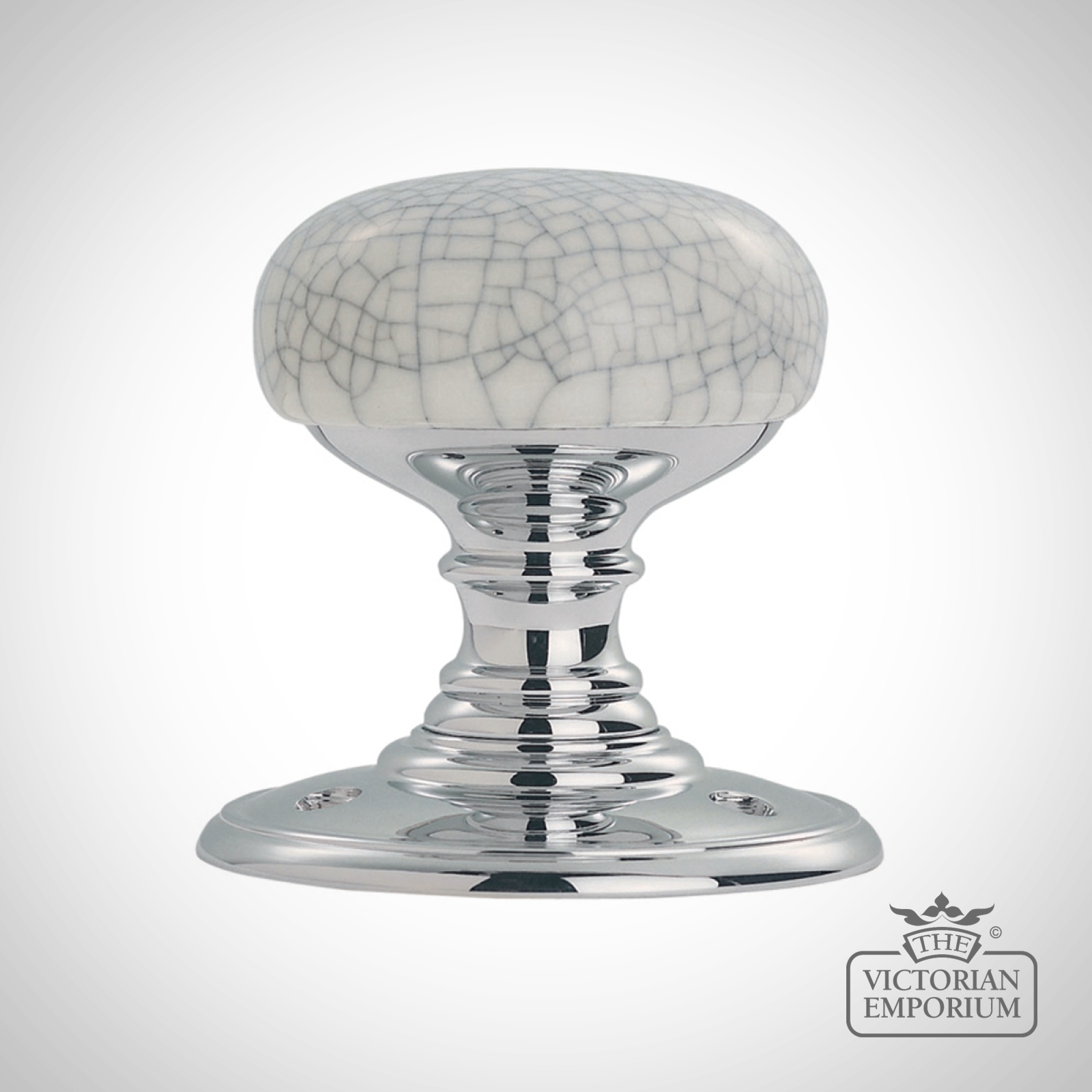 Porcelain knob with blue crackle glaze on polished chrome