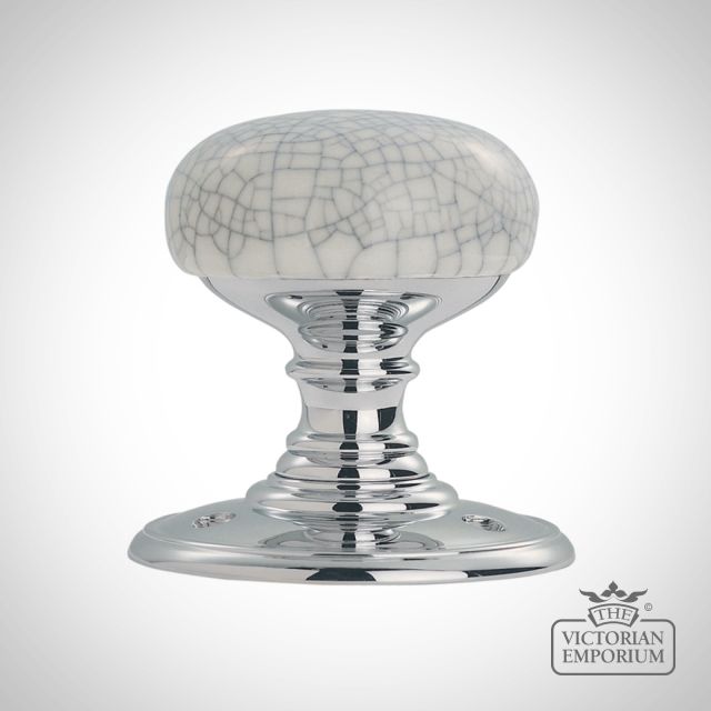 Porcelain knob (blue crackle glaze) 60mm on polished chrome