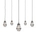 With the adjustable opening at the bottom of the cage, and the adjustable ceiling hooks, this cage pendant light can be altered easily to suit your own preference. Comes as standard with 5 suspensions from one ceiling rose. Additional or less suspensions can be provided on request.