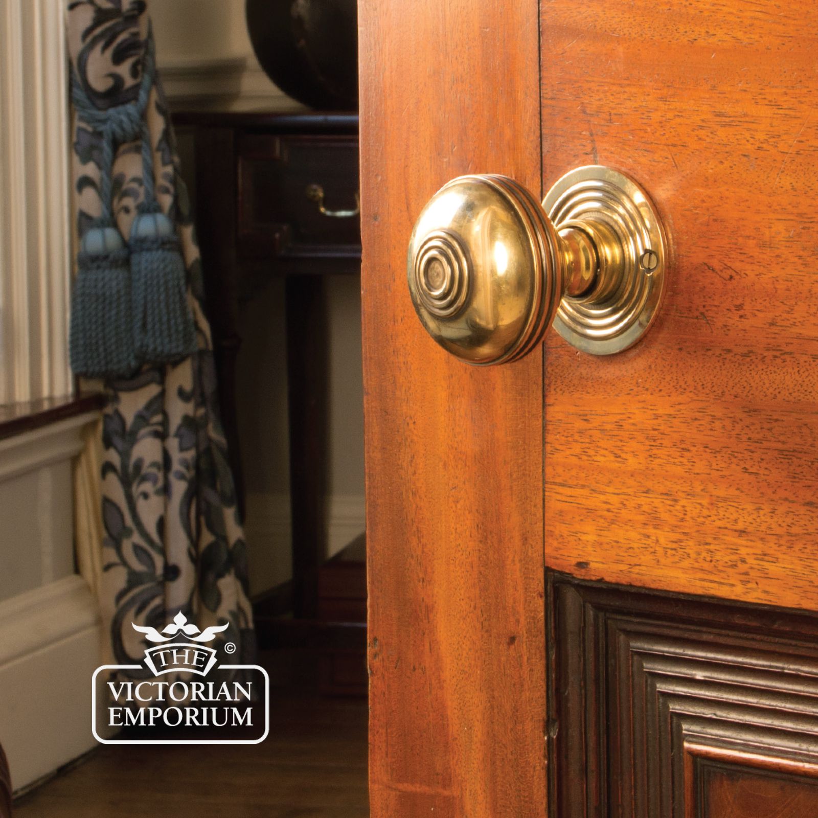 A solid pair of handcrafted door knobs in unpolished solid brass in a choice of two sizes