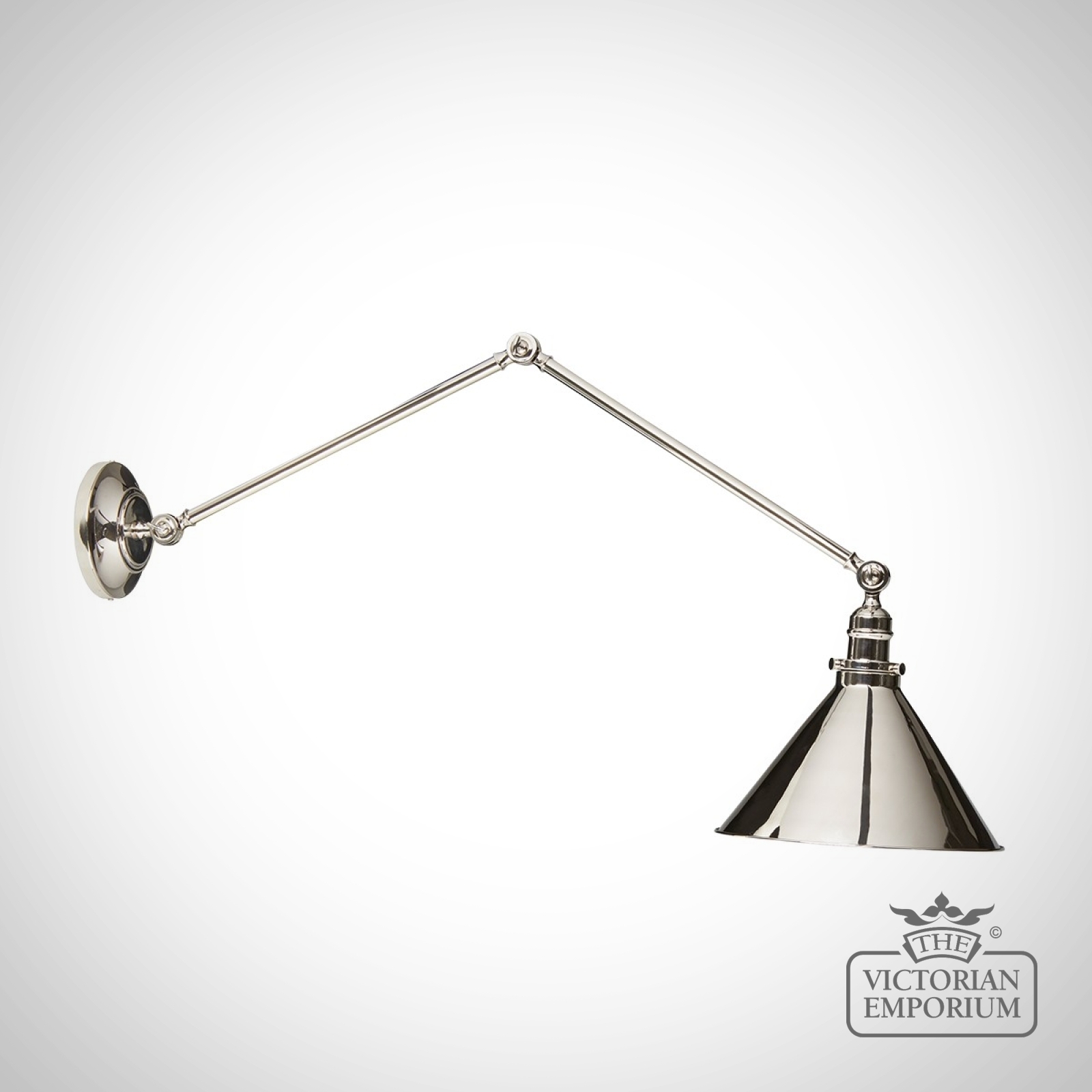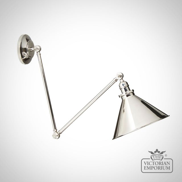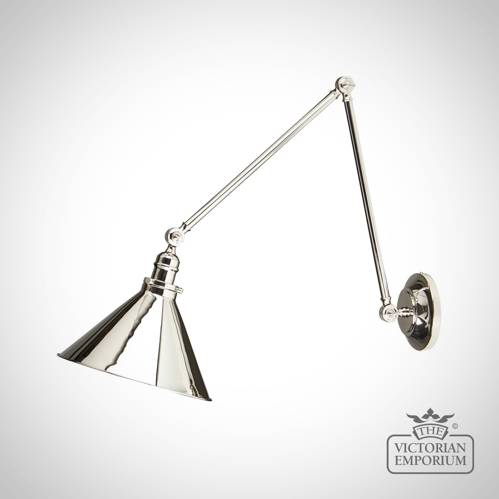 This is a light that can be used either on the wall or as a pendant. This fitting has three adjustable knuckle joints and is available in a choice of 4 finishes: Aged Brass, Polished Copper, Polished Nickel or Old Bronze