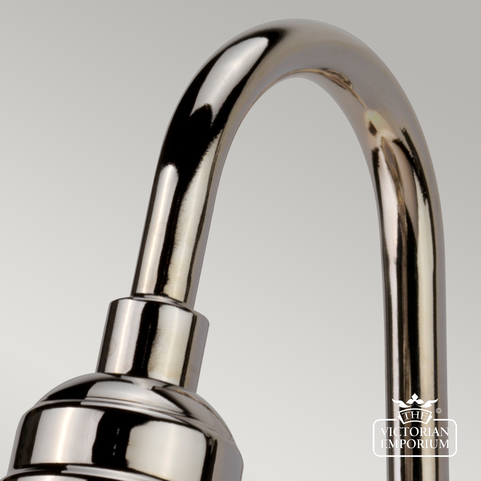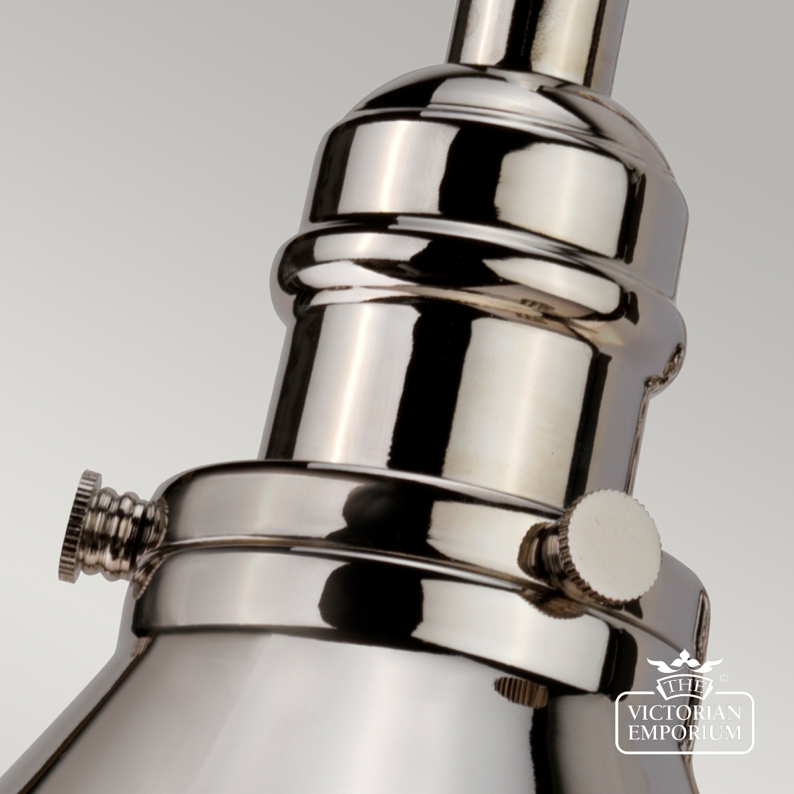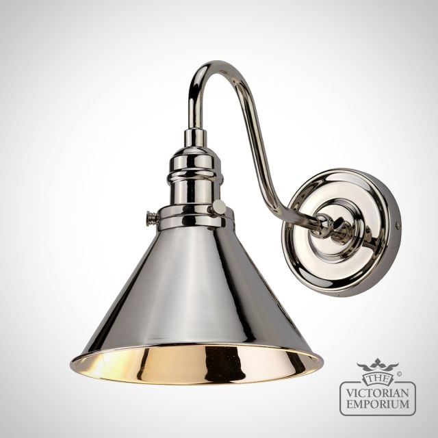 French style, polished nickel wall light commonly used to light tables in kitchens, cafes and bistros.