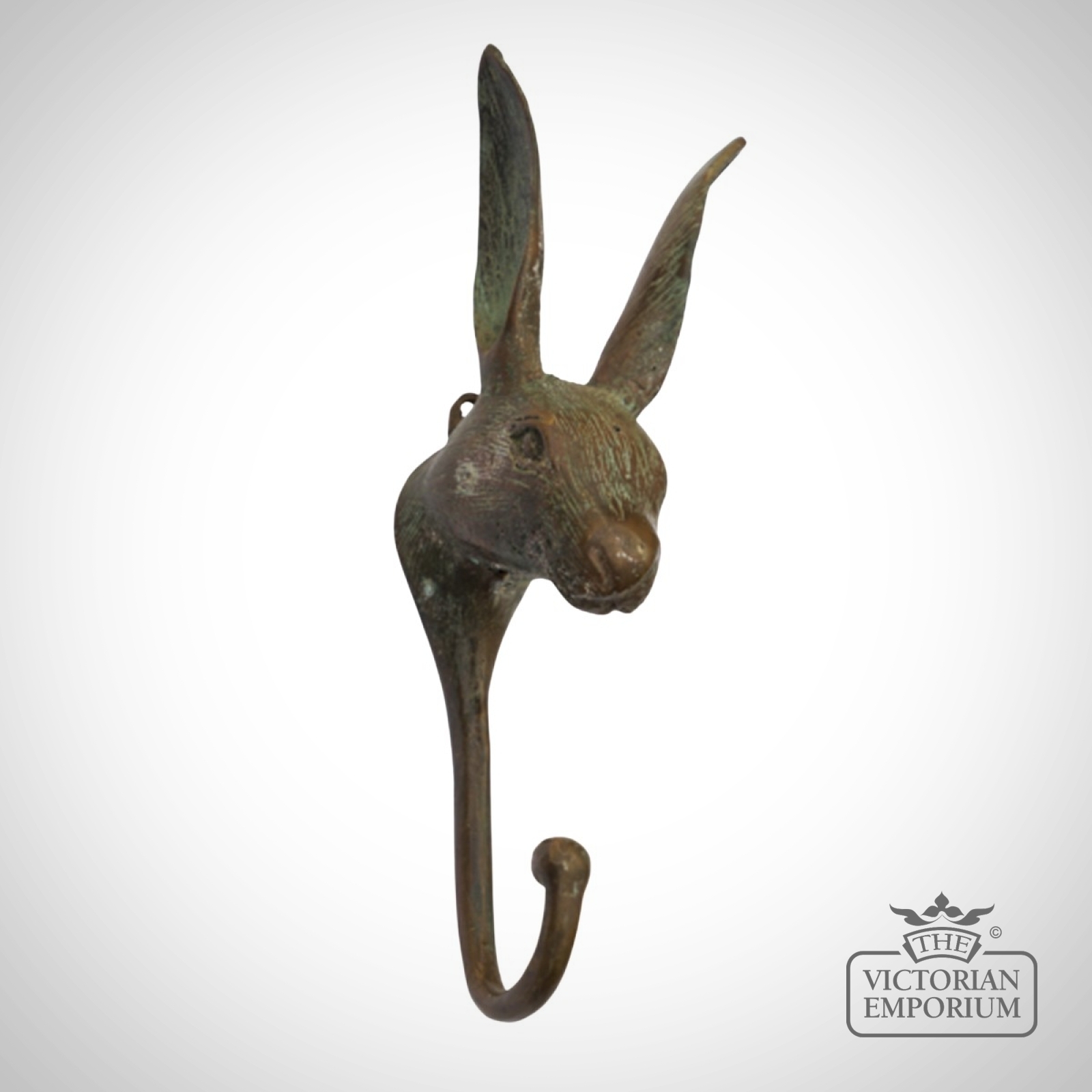 A very unusual hook in the shape of a rabbit, made out of cast brass