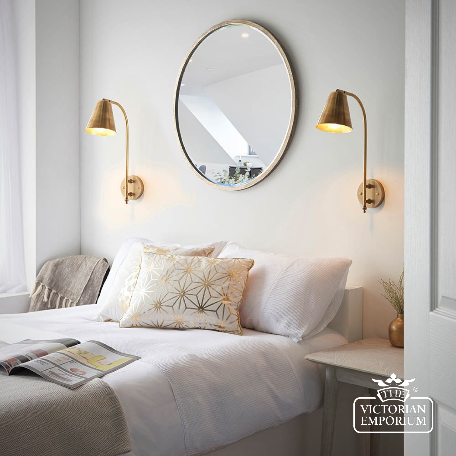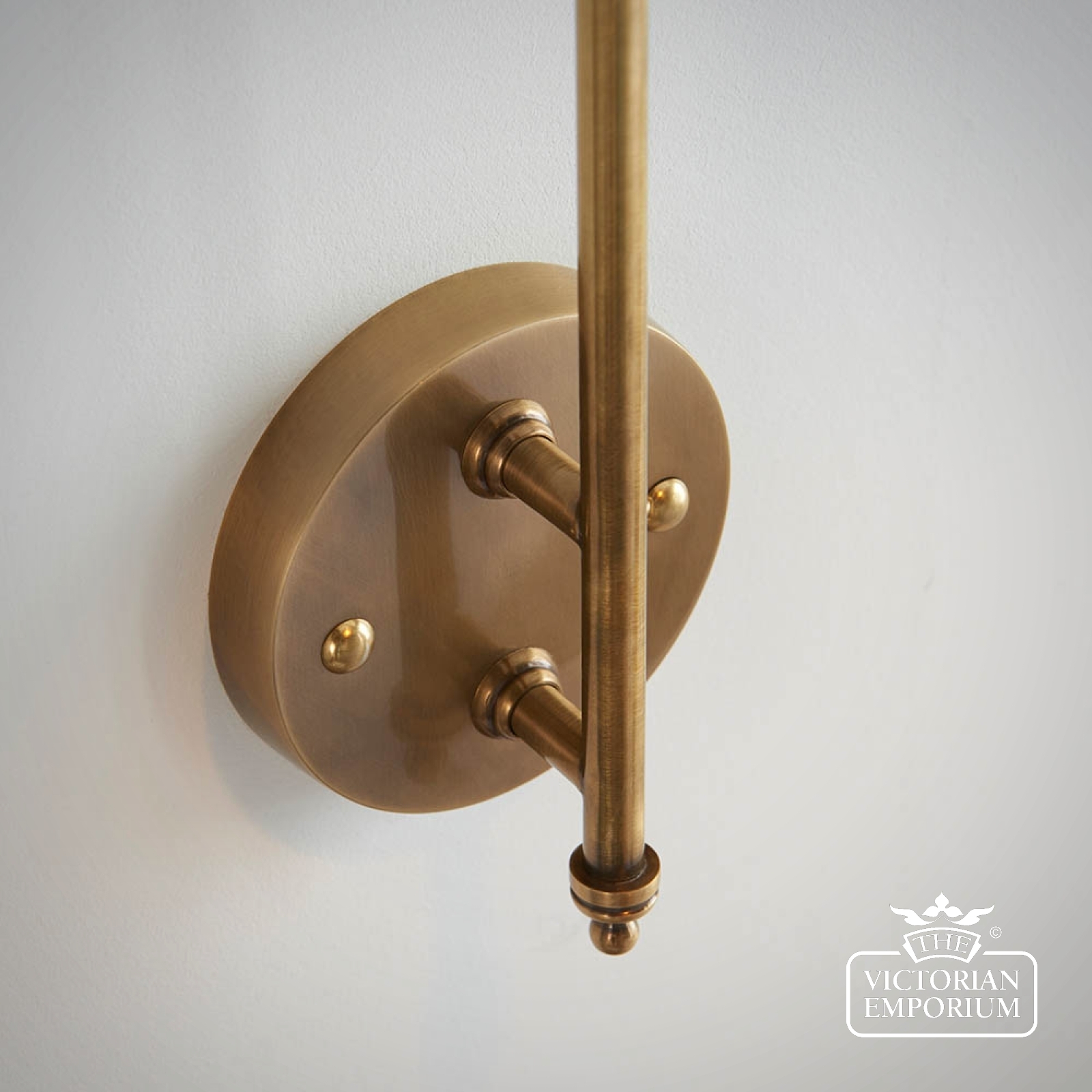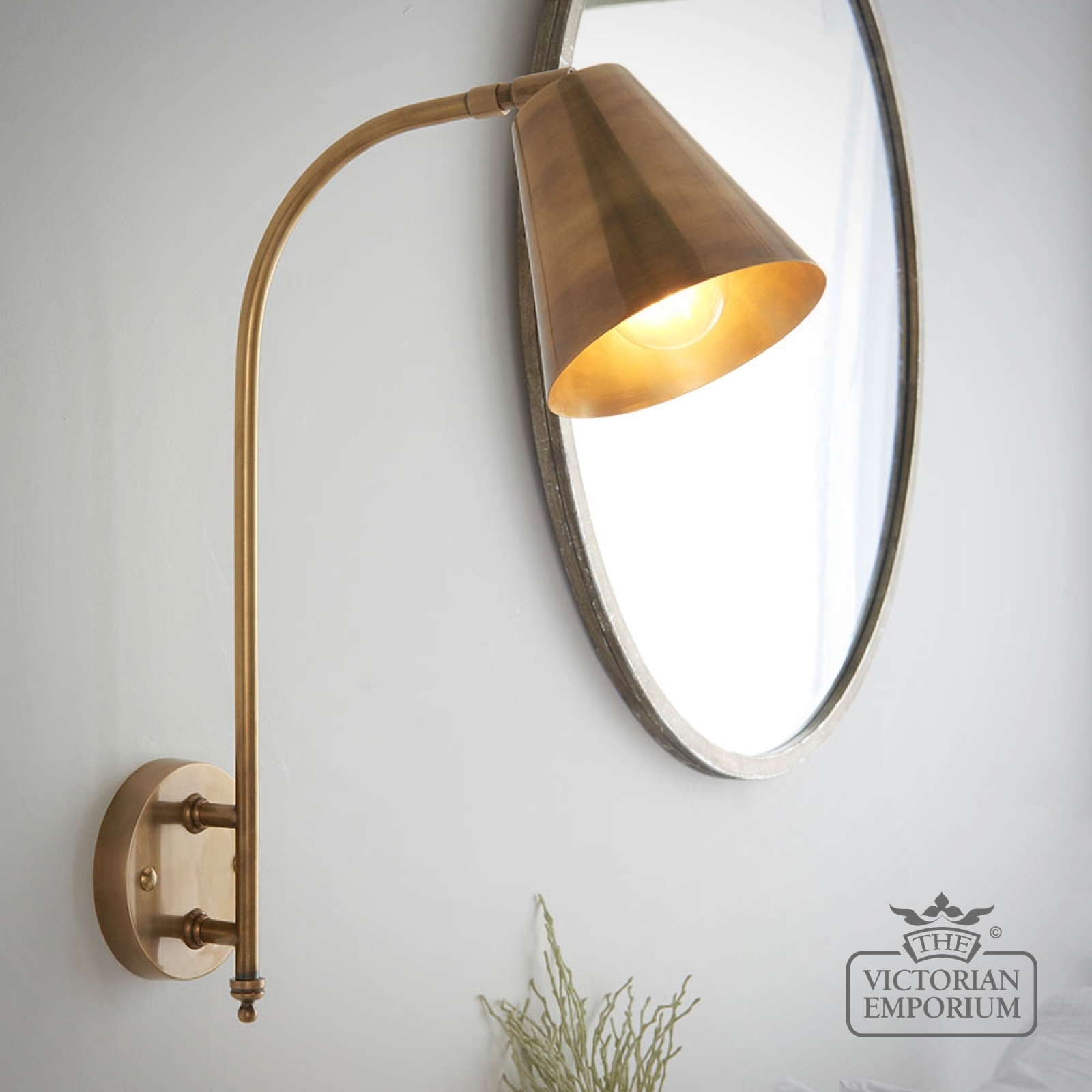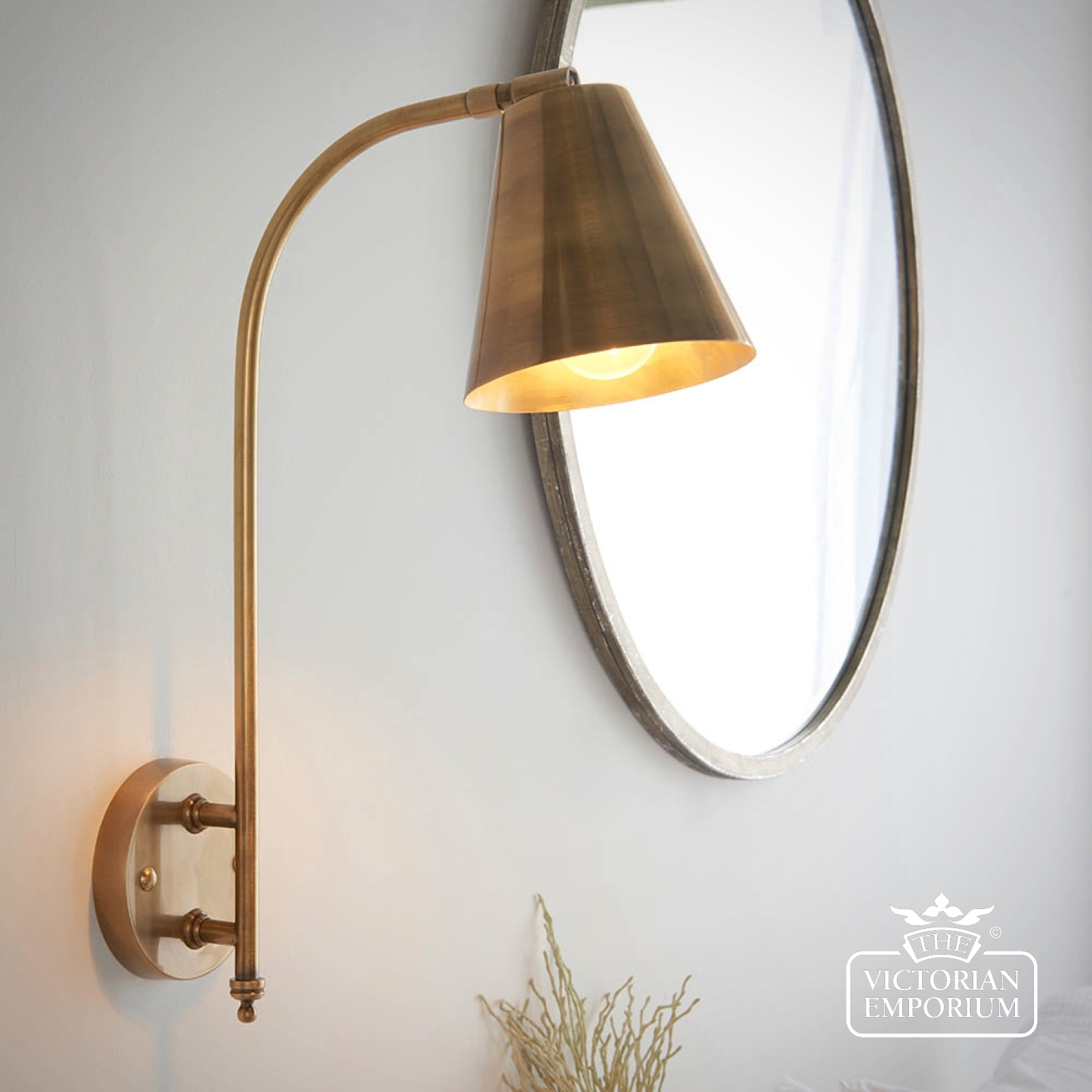A beautiful wall light to position either side of your bed or as a task light above a kitchen work top. This wall light constructed in brass with an authentic antique finish, with a directional shade and classic design details.