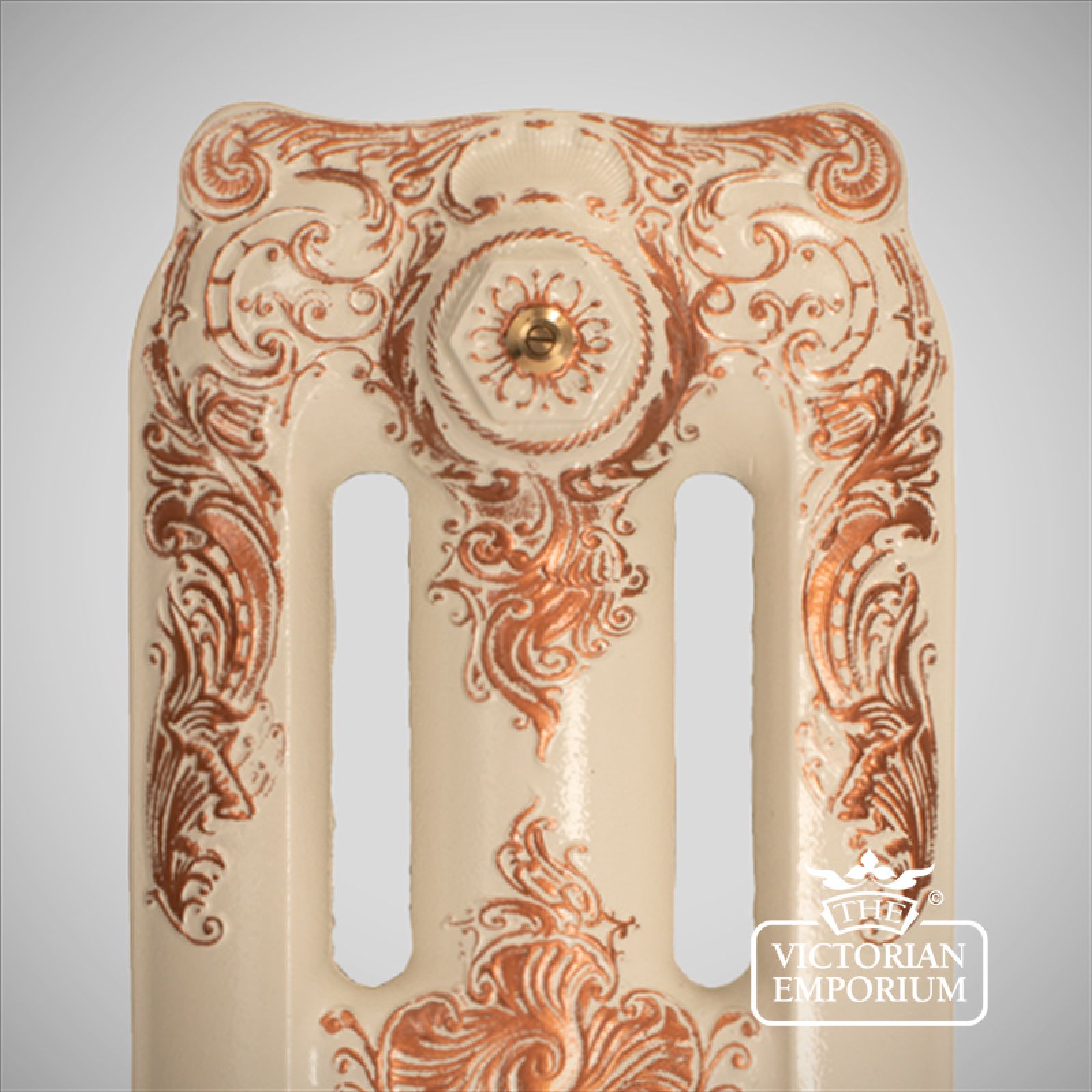 The highlighted paint effect is particularly effective on the decorative radiator styles bringing out the beauty of the raised etched design. Create a stunning finish in two complementary colours. You can choose any base colour from our Farrow and Ball colours or a metallic colour and a highlight colour from the following: pewter, gold or copper.