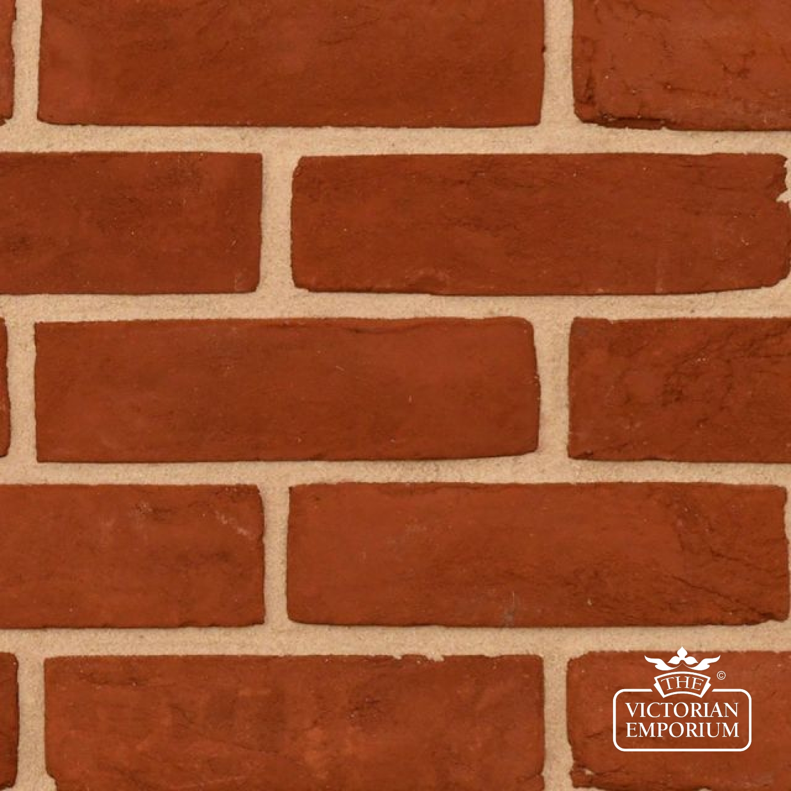 This slip is cut from a handmade brick with a weathered appearance and a genuine reclamation finish, made from a soft red clay, known as a ‘Red Rubber’, with a subtle texture and slight creasing on the face.