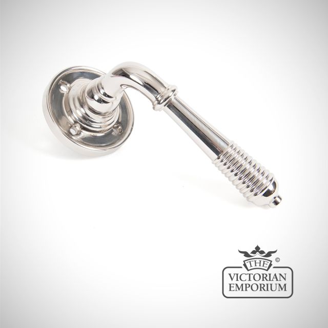Reeded Lever Handle in Polished Nickel on Rose