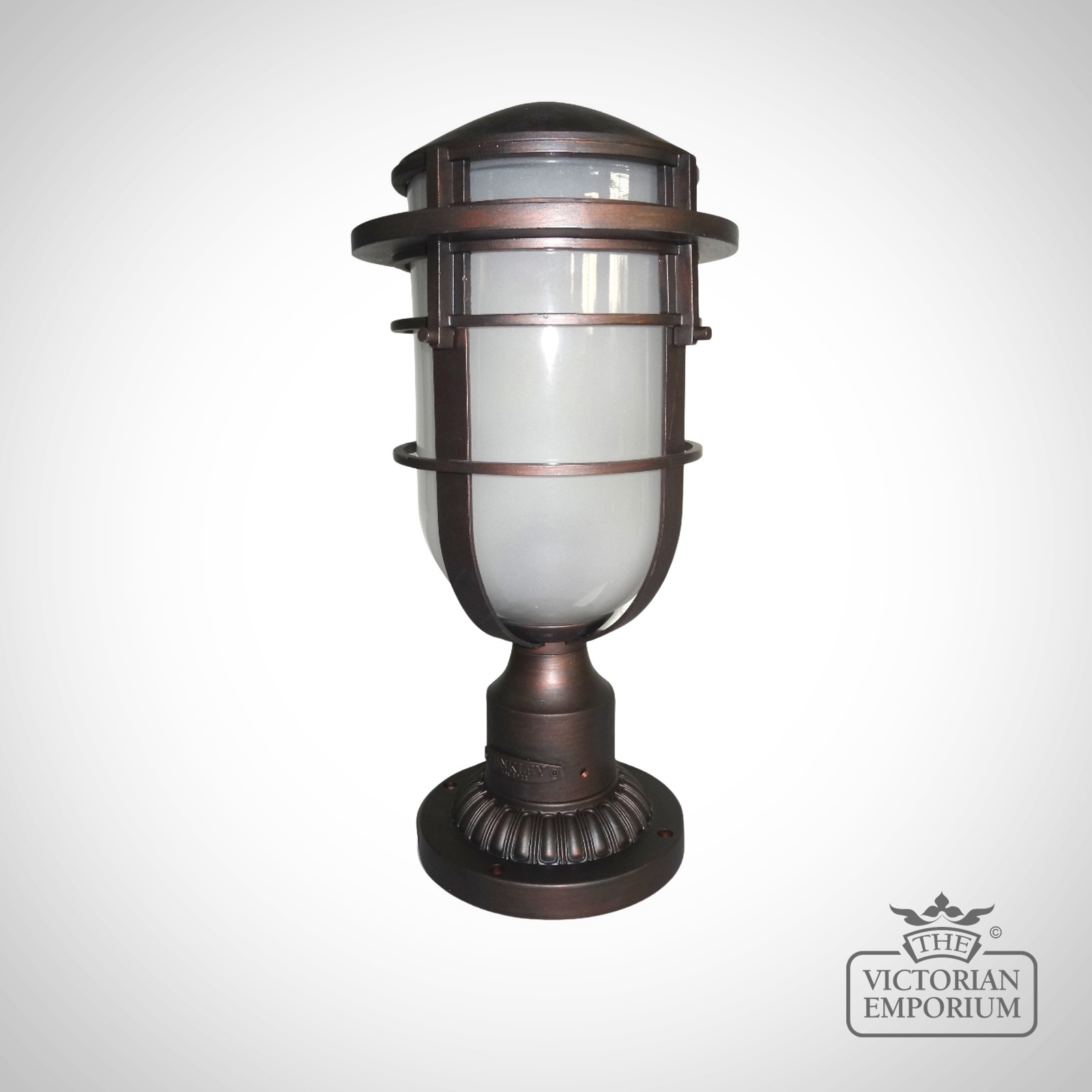 Finish: Reef’s contemporary nautical shape features a sleek capsule of inside etched glass captured by bold rings of cast aluminium