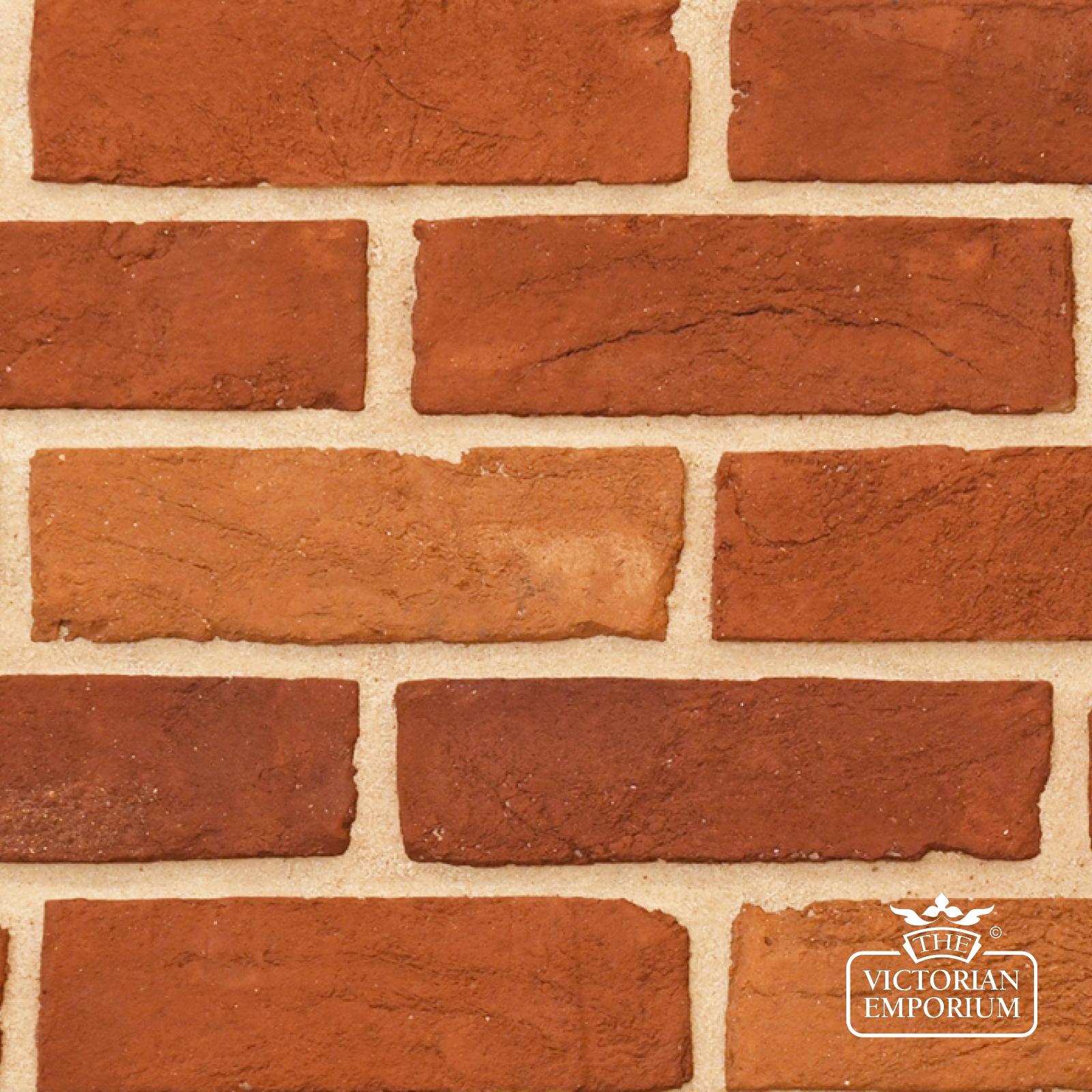 The Regency Red Multi brick is a soft textured handmade brick with natural creasing on the faces, featuring predominantly red shades blended with some oranges.