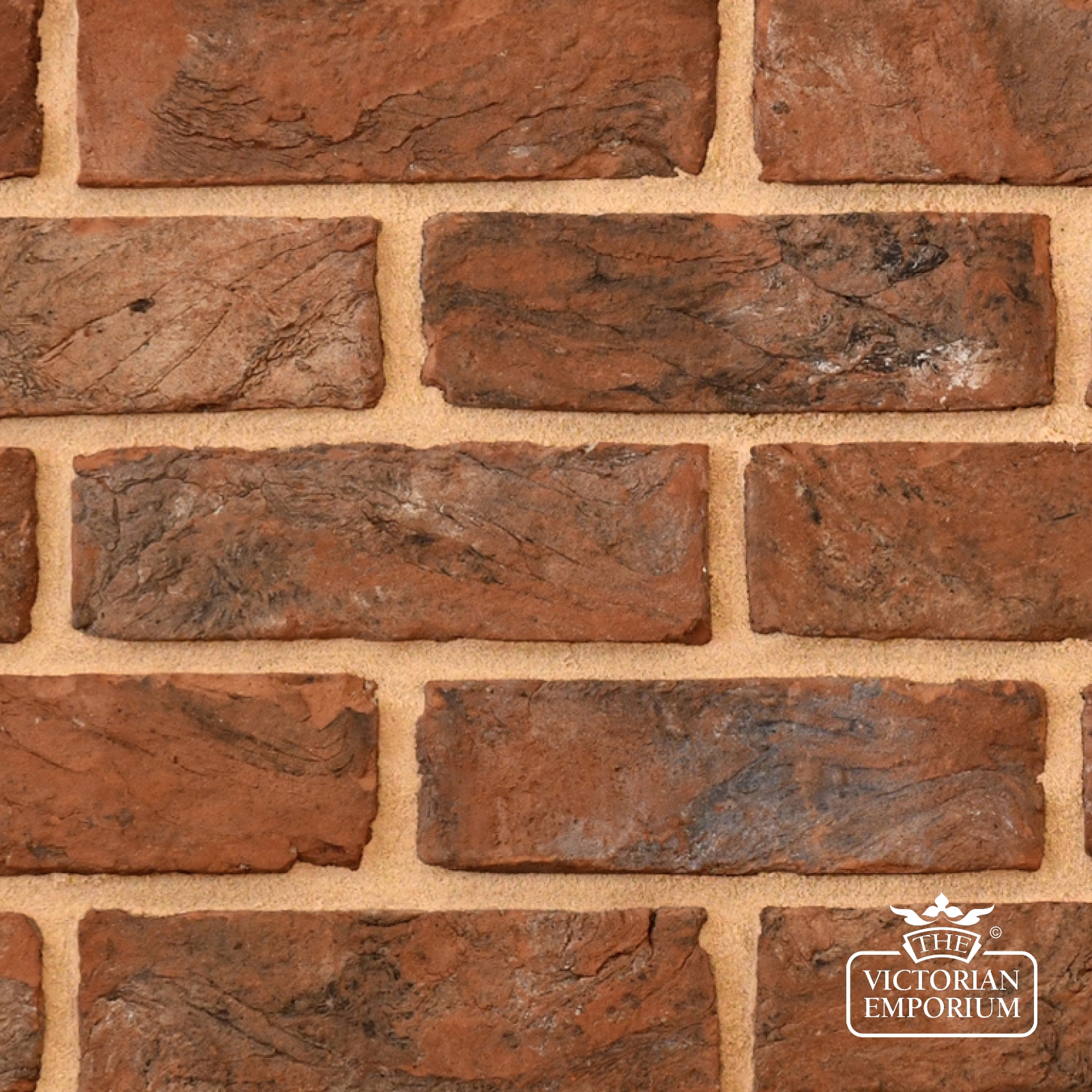 Regency Sovereign are aged red handmade bricks with soot and mortar traces ingrained into the soft creased texture on the faces.