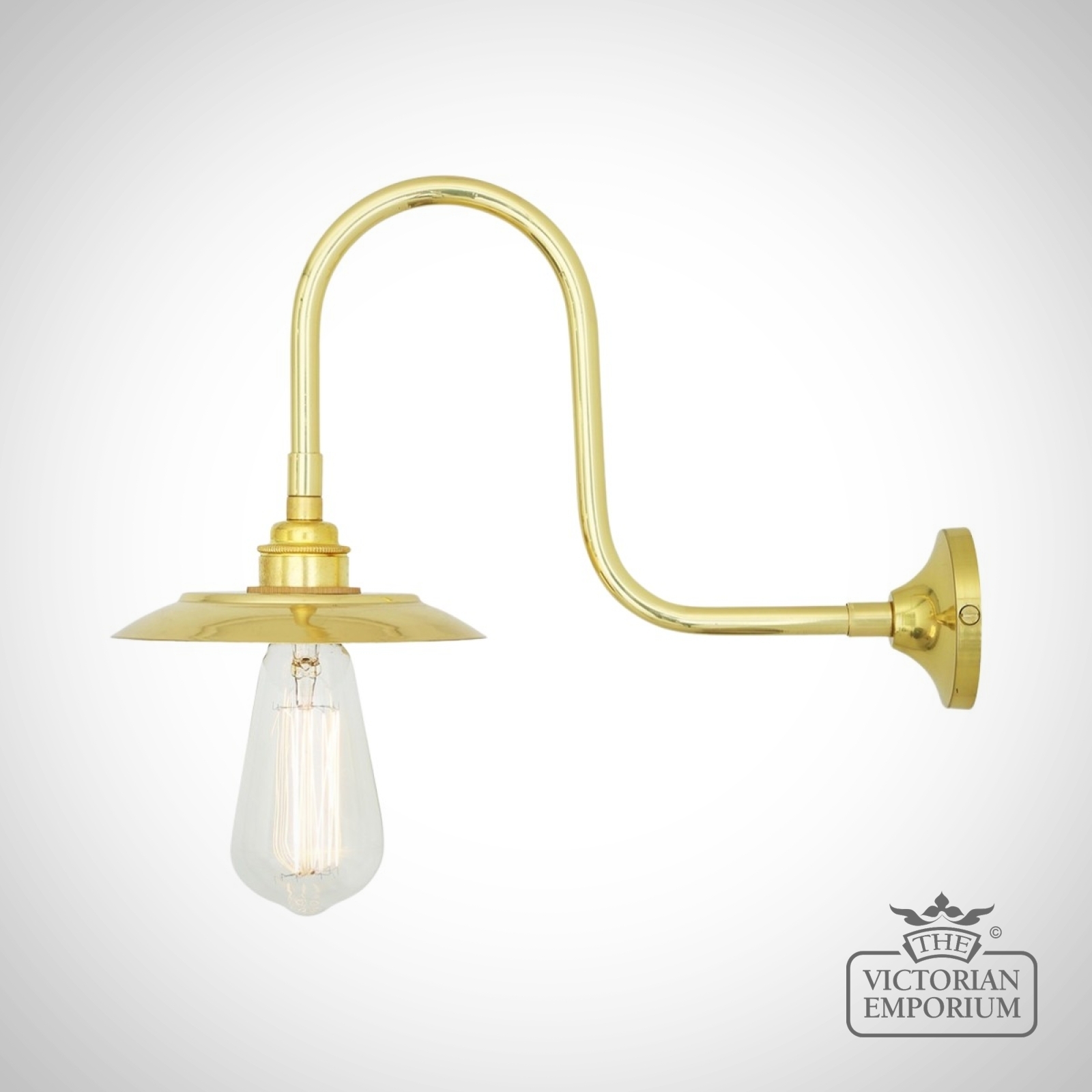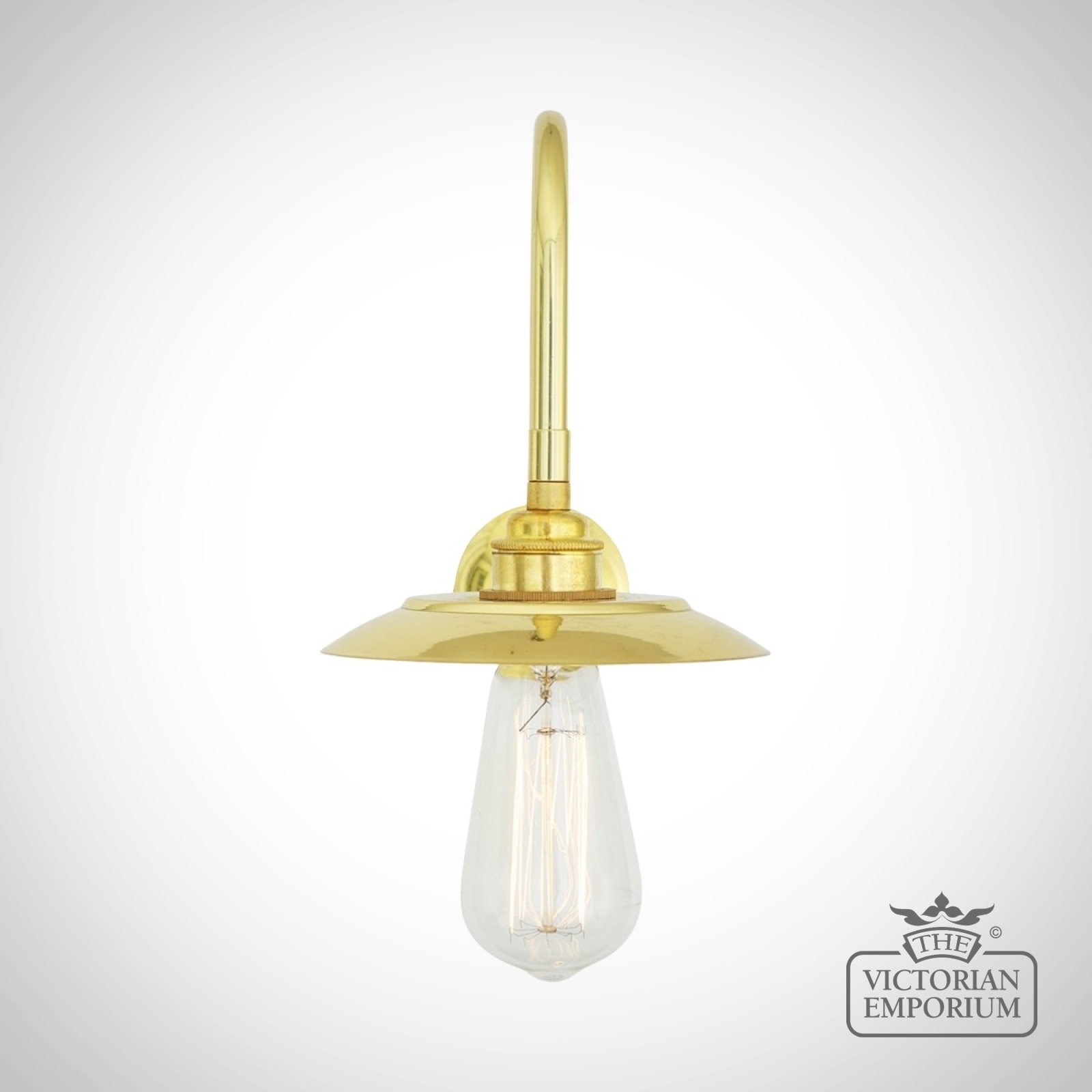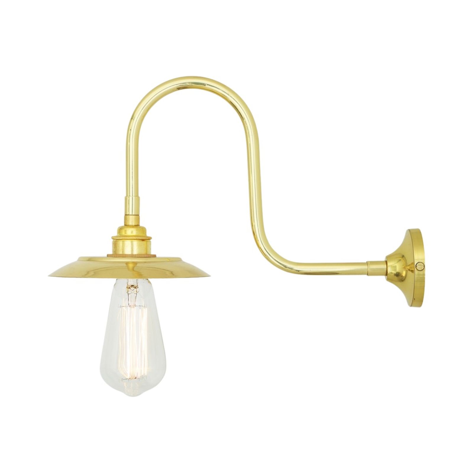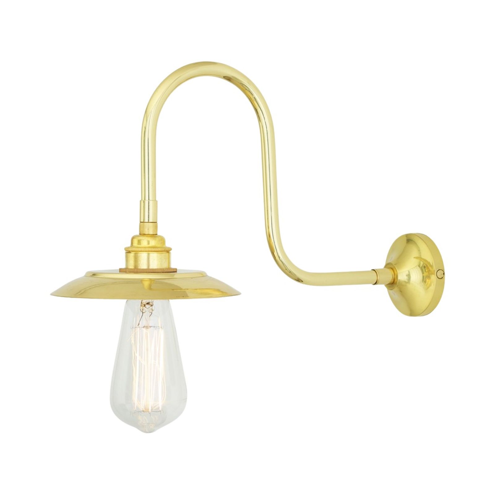 The Reznor swan neck wall light is a more elegant version of the Reznor right angled wall light. It features a brass swan neck arm attached to a matching wall bracket and lamp holder.