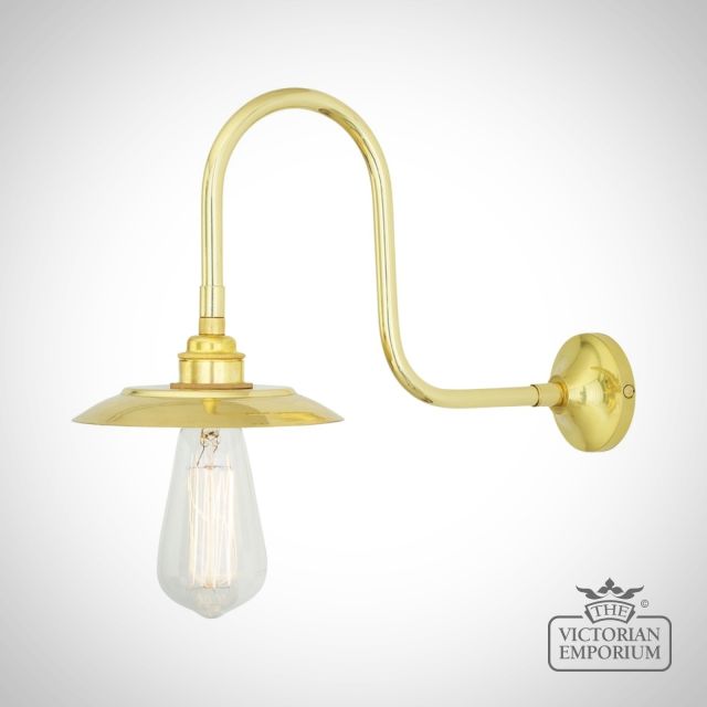The Reznor swan neck wall light is a more elegant version of the Reznor right angled wall light. It features a brass swan neck arm attached to a matching wall bracket and lamp holder.