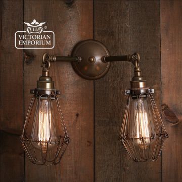 The Rigo Double Cage Wall Light is an industrial style wall light with a unique shape, perfect teamed with Edison-style bulbs.