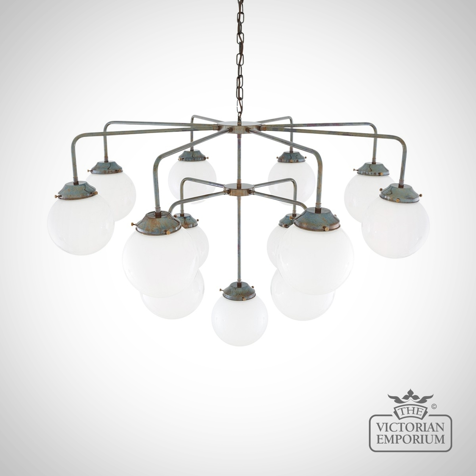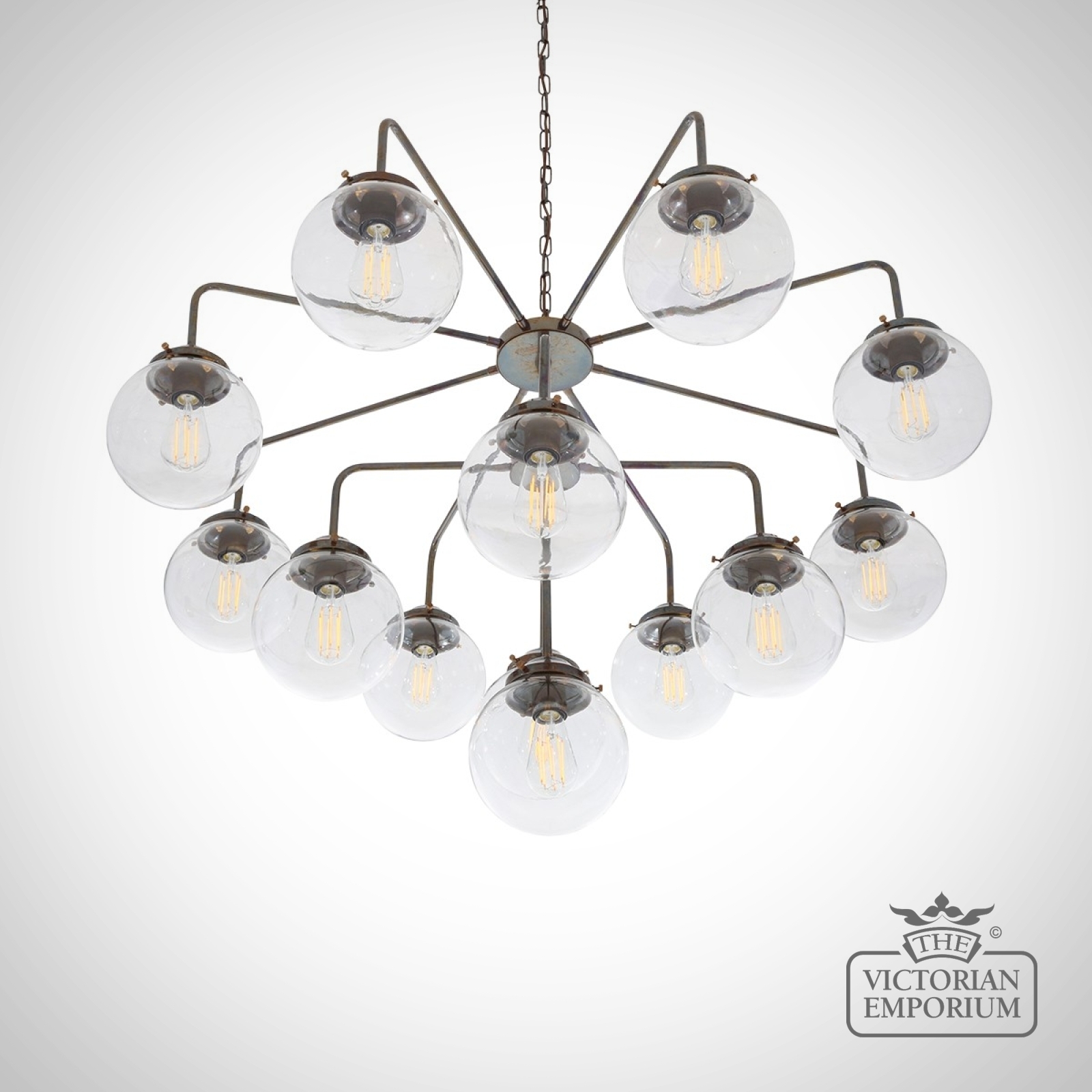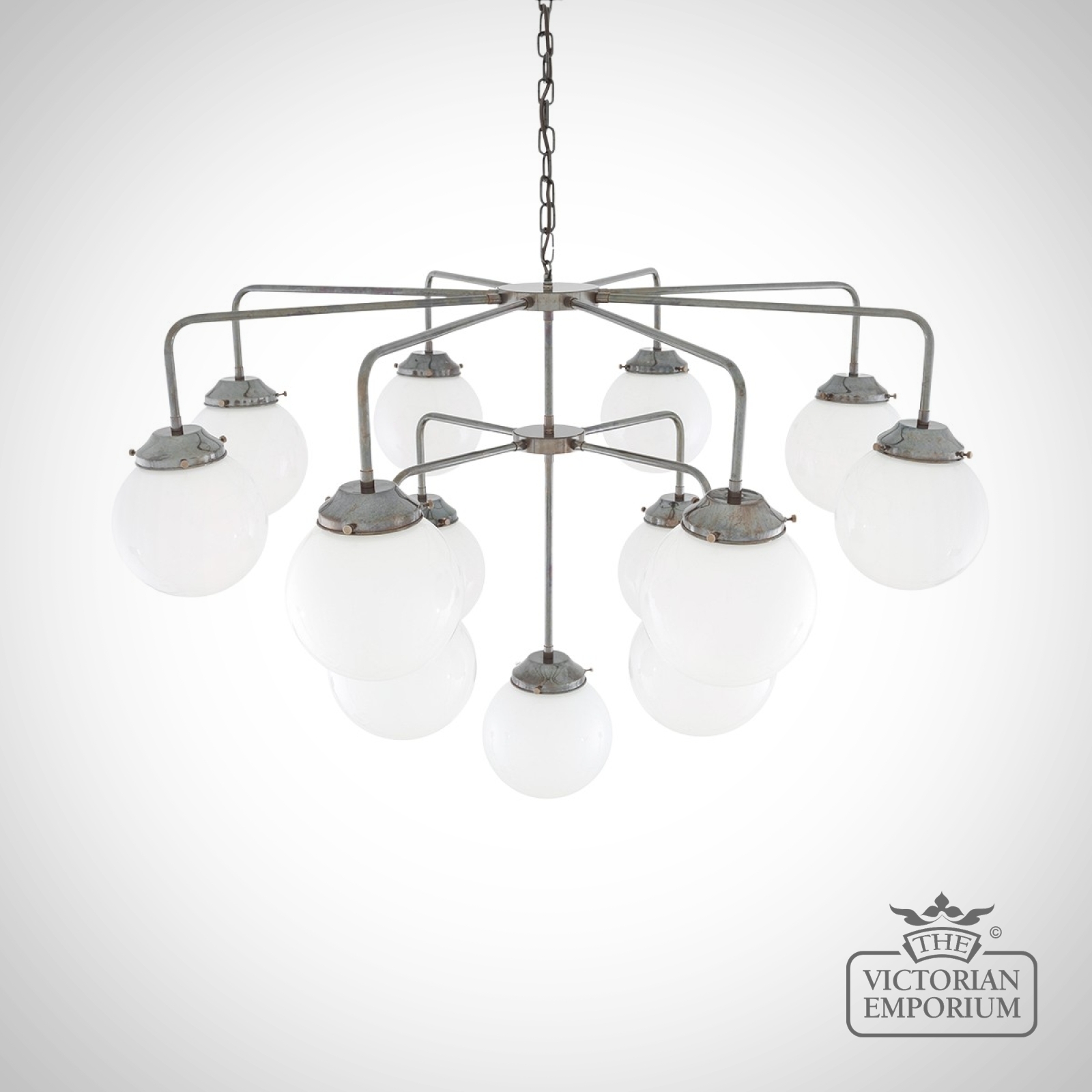 The Roma Grand Chandelier has a sophisticated design featuring globe opal or clear glass shades that will cast a soft glow over a large area.
