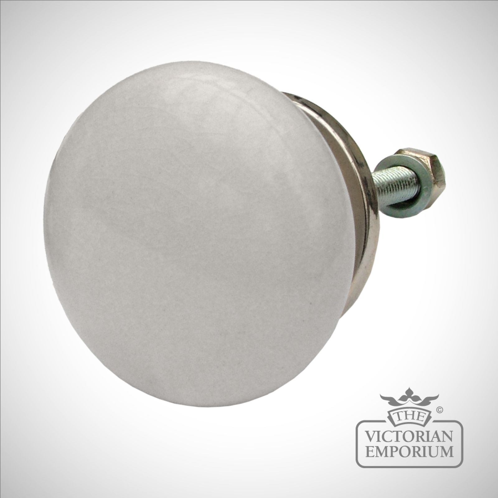 A small porcelain cabinet knob in a spherical shape, a great choice for a period style kitchen. A classic choice for antique furniture or kitchen cabinetry