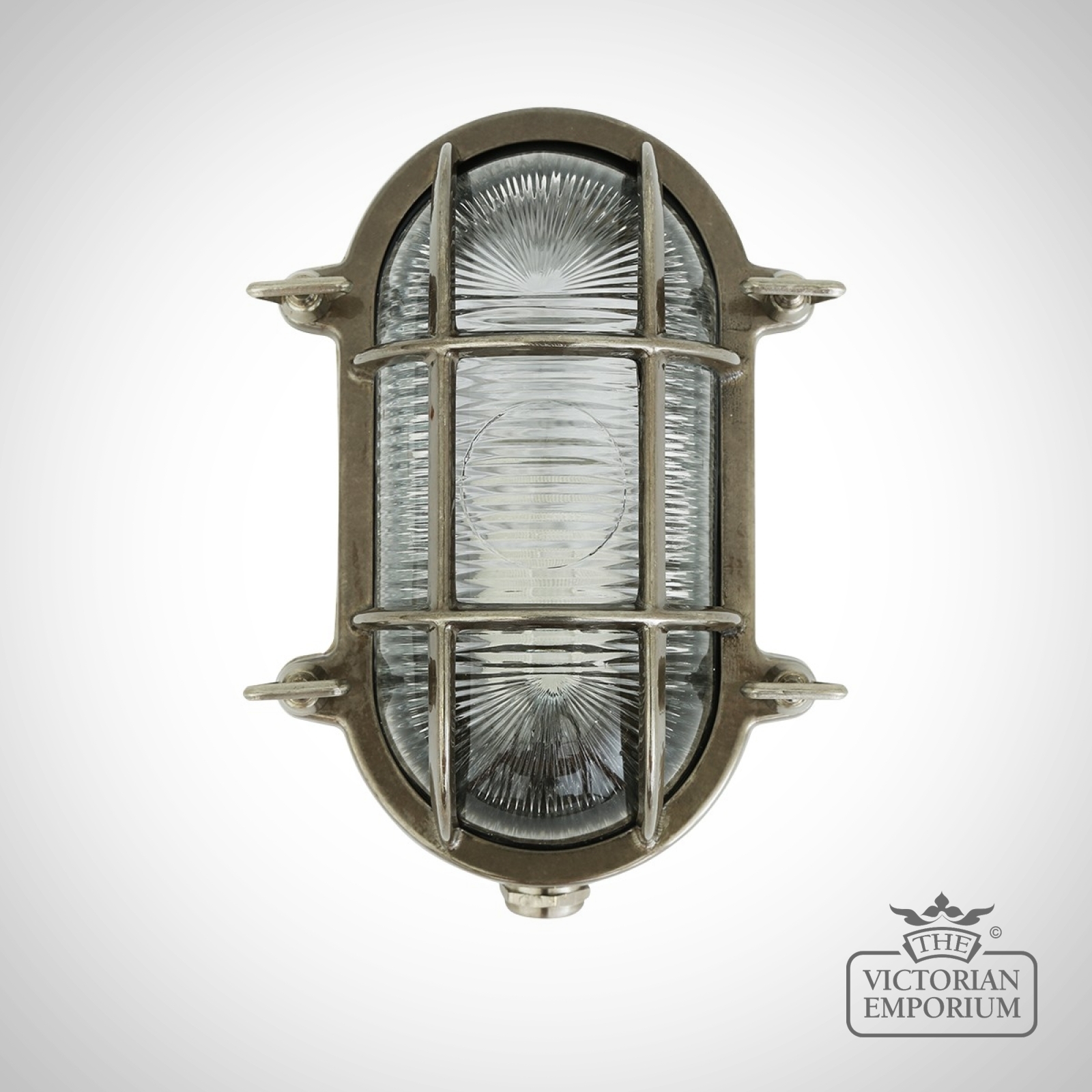 The Ruben Small Oval Marine Light is a great choice for porches, reception areas or pools. It is inspired by ship lights and can be used as a wall or ceiling fitting both indoors or outdoors.