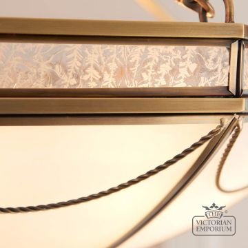 We sell all kinds of interior ceiling lights and pendant ceiling lights that will look beautiful hanging from the ceiling in most of the rooms in your home. These are especially popular in rooms with high ceilings such as hallways, dining rooms and sitting rooms in your Victorian house. We also sell a variety of complementary lighting fixtures such as flush mount ceiling lights, wall lights and lamps to match our Victorian ceiling lights. Many of our ceiling pendants have adjustable drops or can be supplied with longer chains for especially high ceilings.