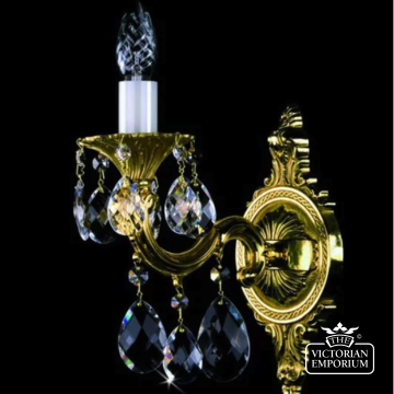 Stunning single cast antique wall sconce with oval shaped bohemian crystal (30%PbO) drops