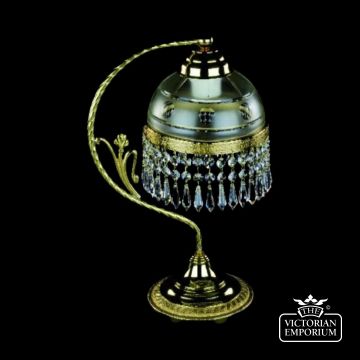 Scarlett Lead Crystal Table Lamp With Delicate Tear Drops And Brass Frame.