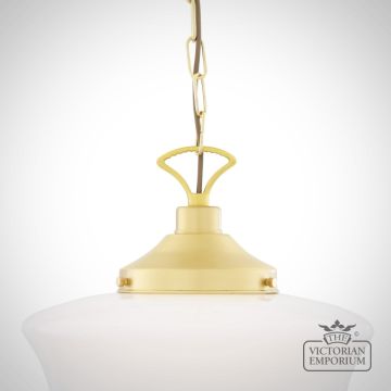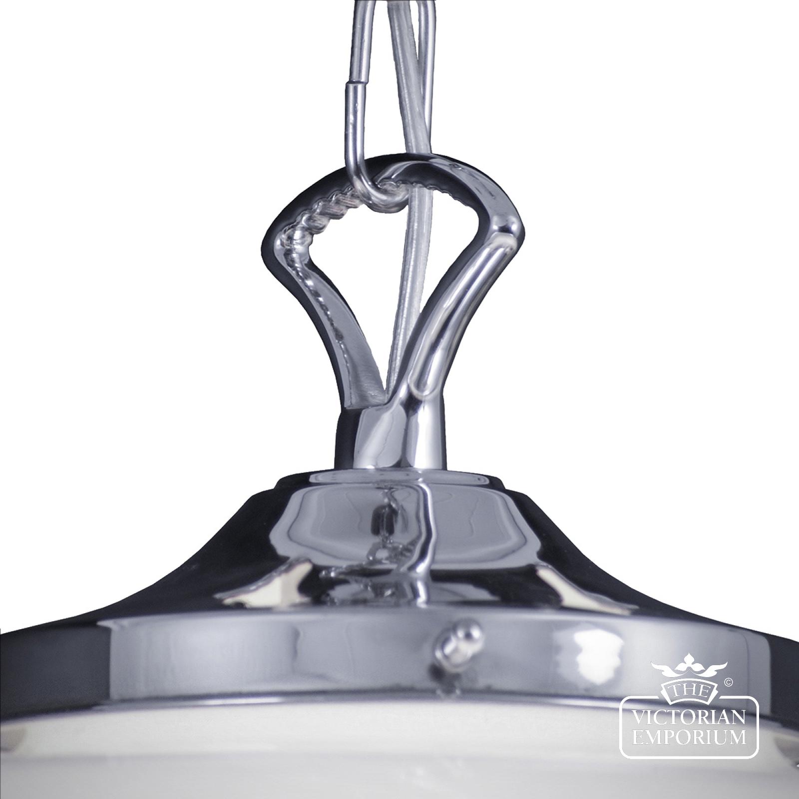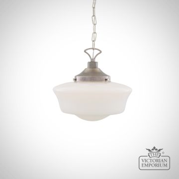 Suspended from a simple chain, this pendant light features a classic opal glass shade to cast a soft ambient light over a wide area.