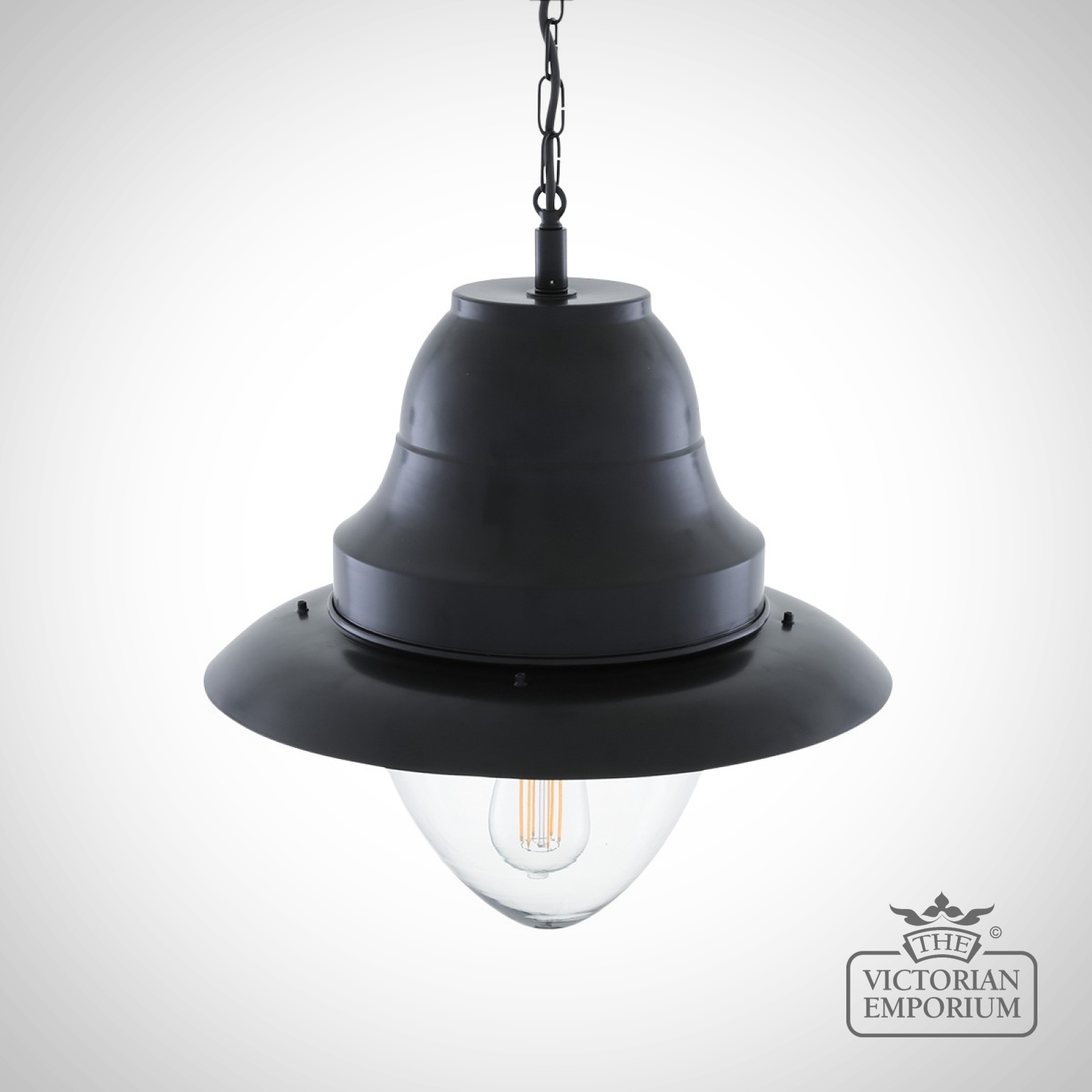 The Scotsdale pendant is a large nautical-style pendant with a large, matte-black aluminium shade that encloses a cone-shaped glass shade. The glass shade can be clear or opal as desired.