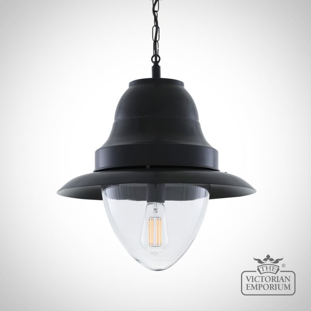 The Scotsdale pendant is a large nautical-style pendant with a large, matte-black aluminium shade that encloses a cone-shaped glass shade. The glass shade can be clear or opal as desired.