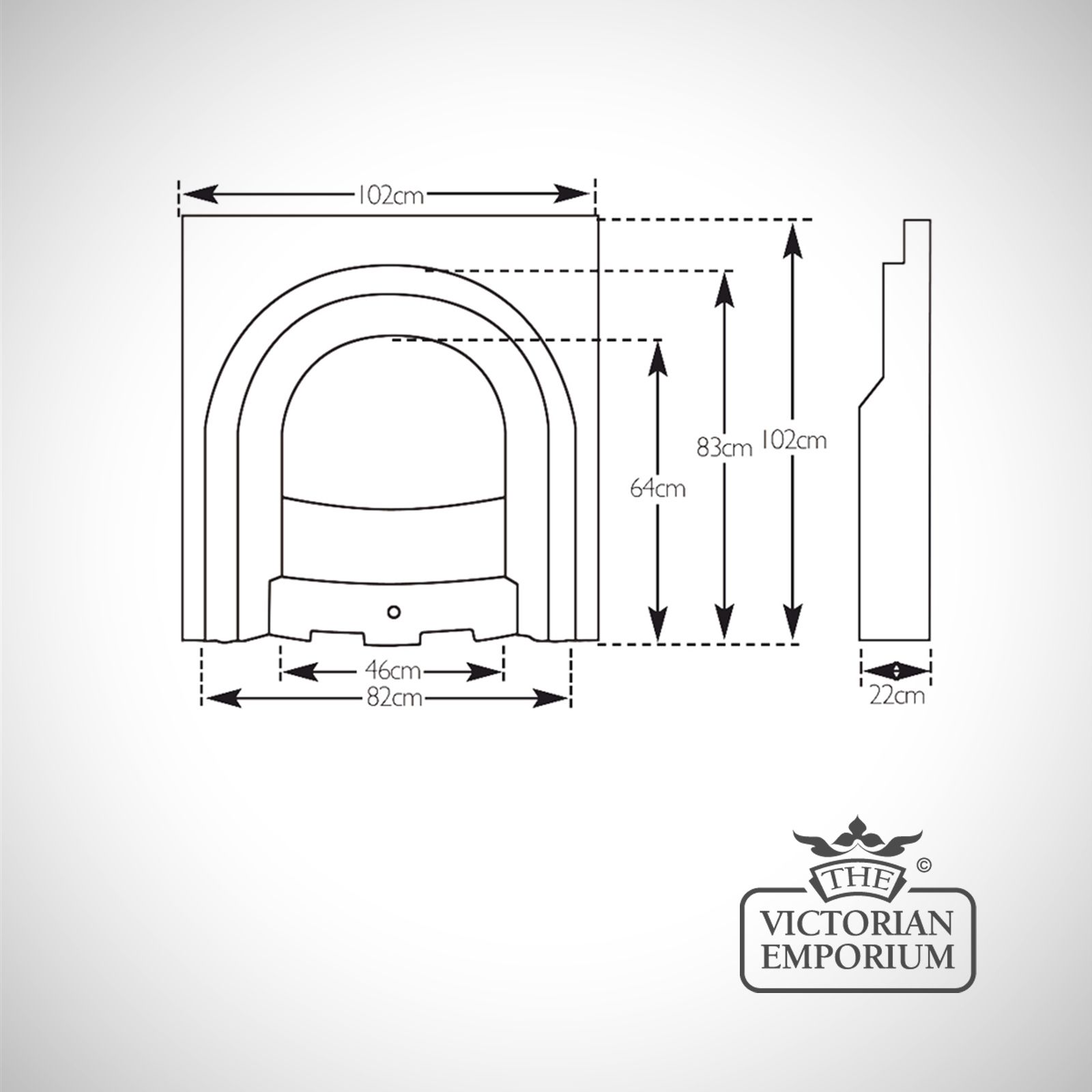 The Scott is a beautiful cast iron fireplace insert in the Early Victorian style in an ashpan black finish. The opening is surrounded by a double archway, both with wonderfully different designs that compliment each other, and the patterned detailing that surrounds the outer arch is complimented perfectly by the subtle beading of the inner. The bars and ash cover are both curved, in keeping with the design of the insert.