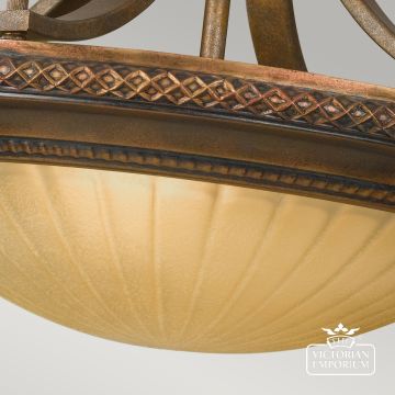 Decorative period style semi flush mounted light in gold and bronze