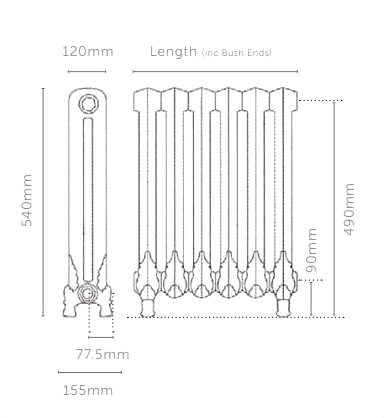 Shaftsbury Cast Iron Radiator 540mm High - Ornate Design