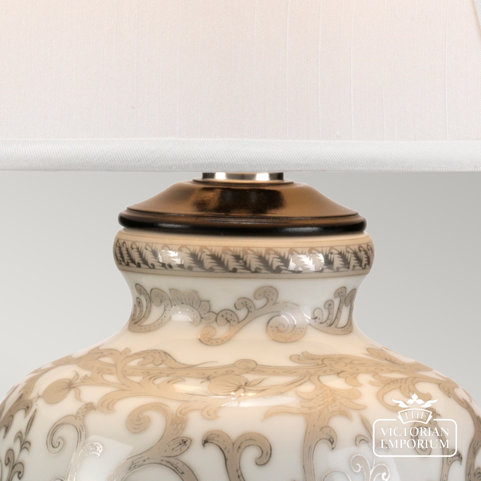 Silver Thistle Table Lamp with Porcelain Base and Fabric Shade