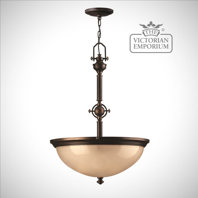 This is a traditional light suitable for any room with an olde bronze finish and etched amber glass, giving a traditional period feel.