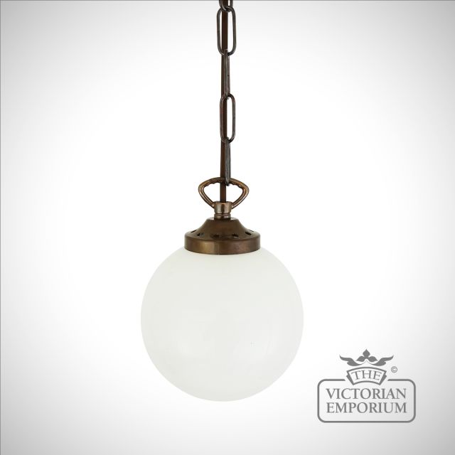 This simple globe pendant light is a perfect addition in a foyer or above a kitchen island and features a classic opal glass shade to cast a soft ambient light over a wide area.